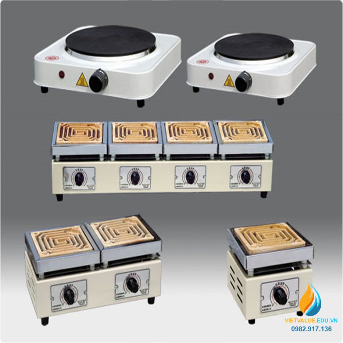 - Bếp điện được sử dụng như một bếp đun gia nhiệt nhưng sử dụng công nghệ đun nóng do nhiệt lượng của điện trở tỏa ra khi có dòng điện chạy qua với cường độ lớn. Bếp điện tạo ra nhiệt lượng lớn giúp bạn phá mẫu thay đổi tính chất của mẫu trong quá trình chế tạo tạo ra thành phẩm cuối cùng hay nghiên cứu tính chất lý tính và hóa tính của mẫu thay đổi theo nhiệt độ.