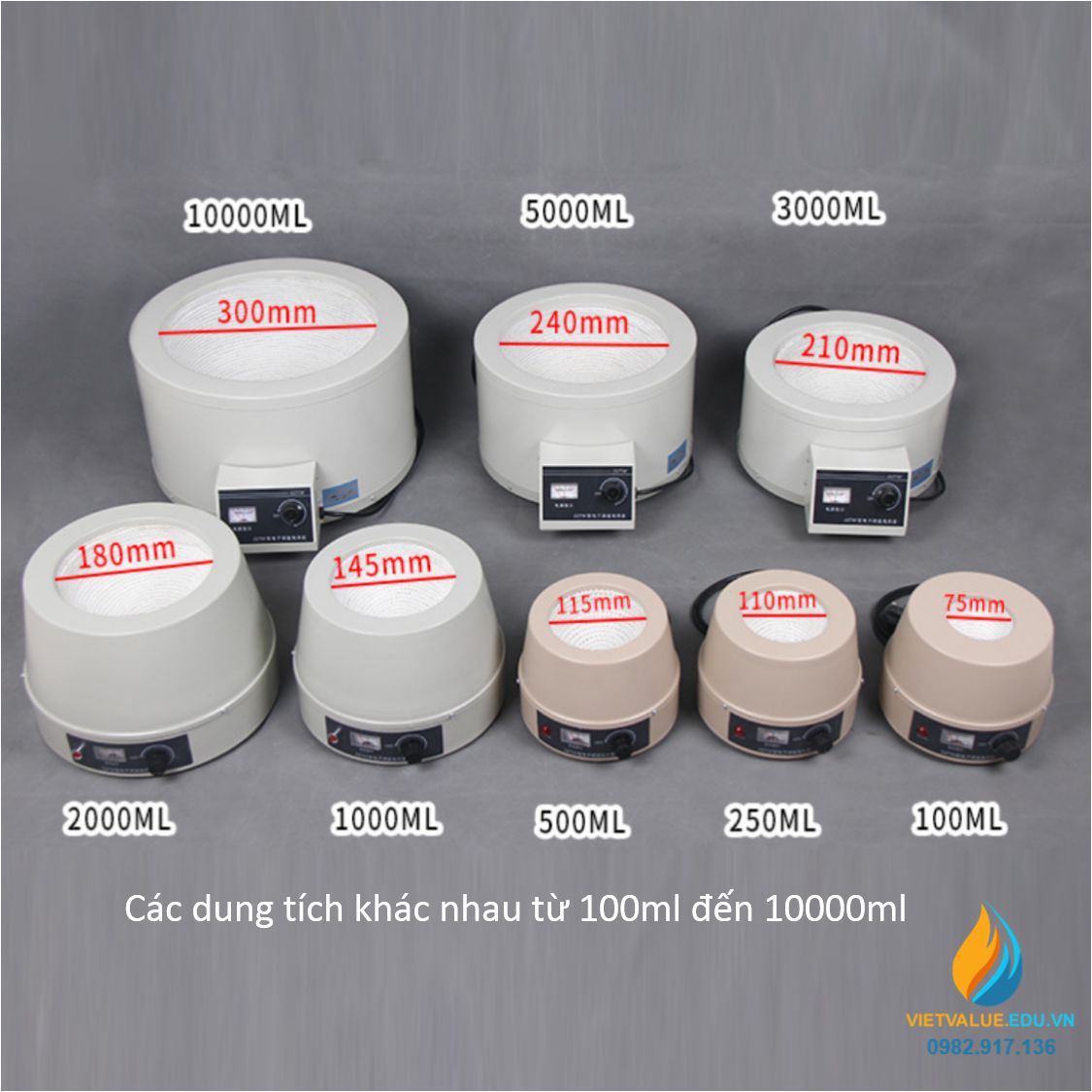 - Bạn có thể lựa chọn các loại bếp đun bình cầu với nhiều dung tích khác nhau từ 100ml, 250ml, 500ml, 1000ml, … 20000ml. Hãy lựa chọn sản phẩm với dung tích phù hợp với nhu cầu sử dụng.