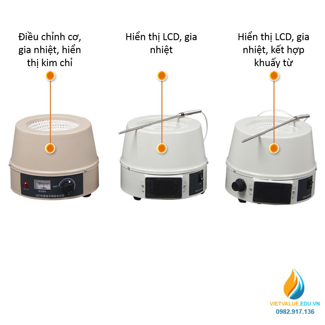 - Bạn có thể lựa chọn 3 loại sản phẩm khác nhau ở chức năng sử dụng, khả năng hiển thị, hình thức điều chỉnh. Chức năng sử dụng gồm gia nhiệt, hoặc gia nhiệt kết hợp khuấy từ. Khả năng hiển thị gồm hiển thị kim chỉ, hiển thị LCD, hình thức điều chỉnh gồm điều chỉnh cơ núm vặn, điều chỉnh kỹ thuật số.