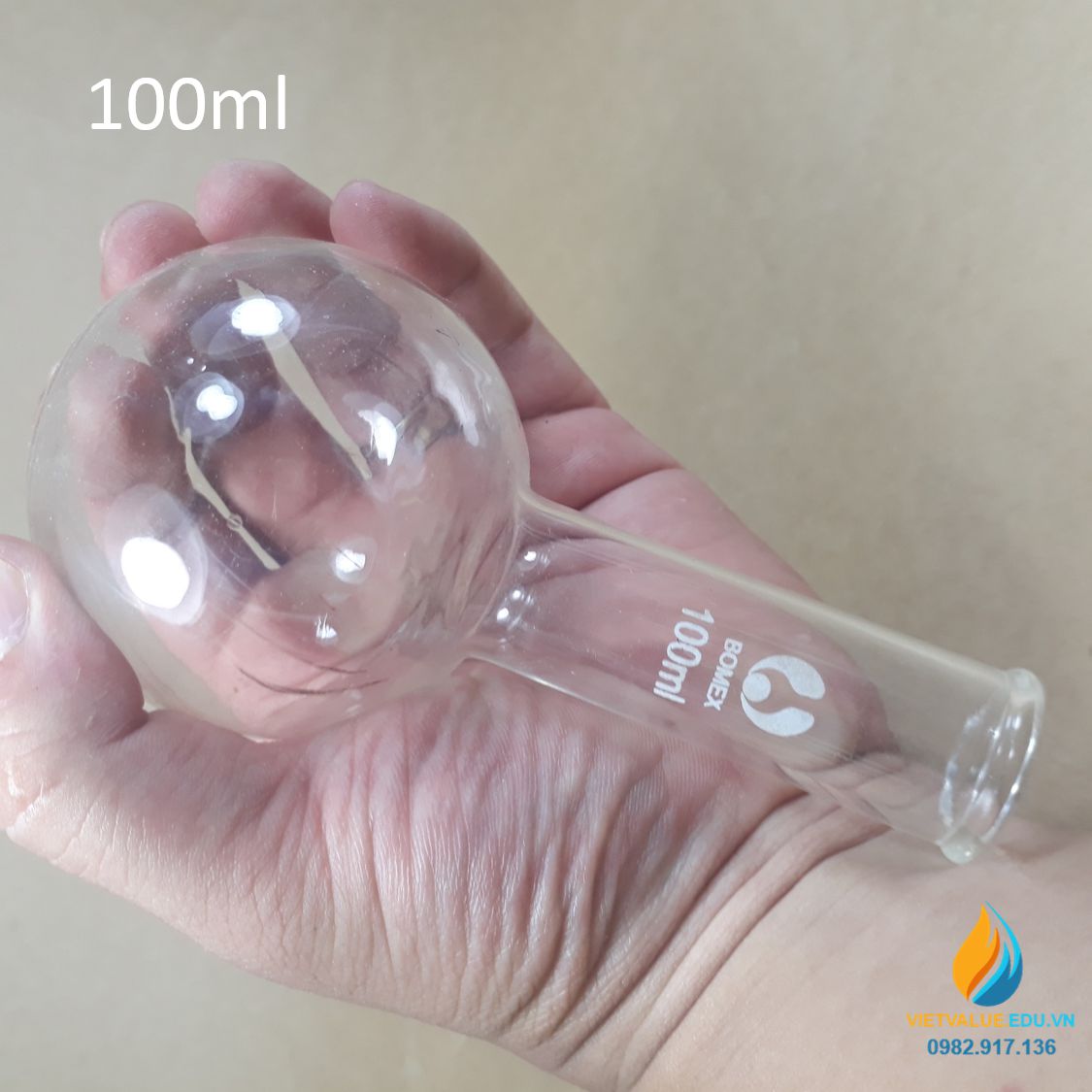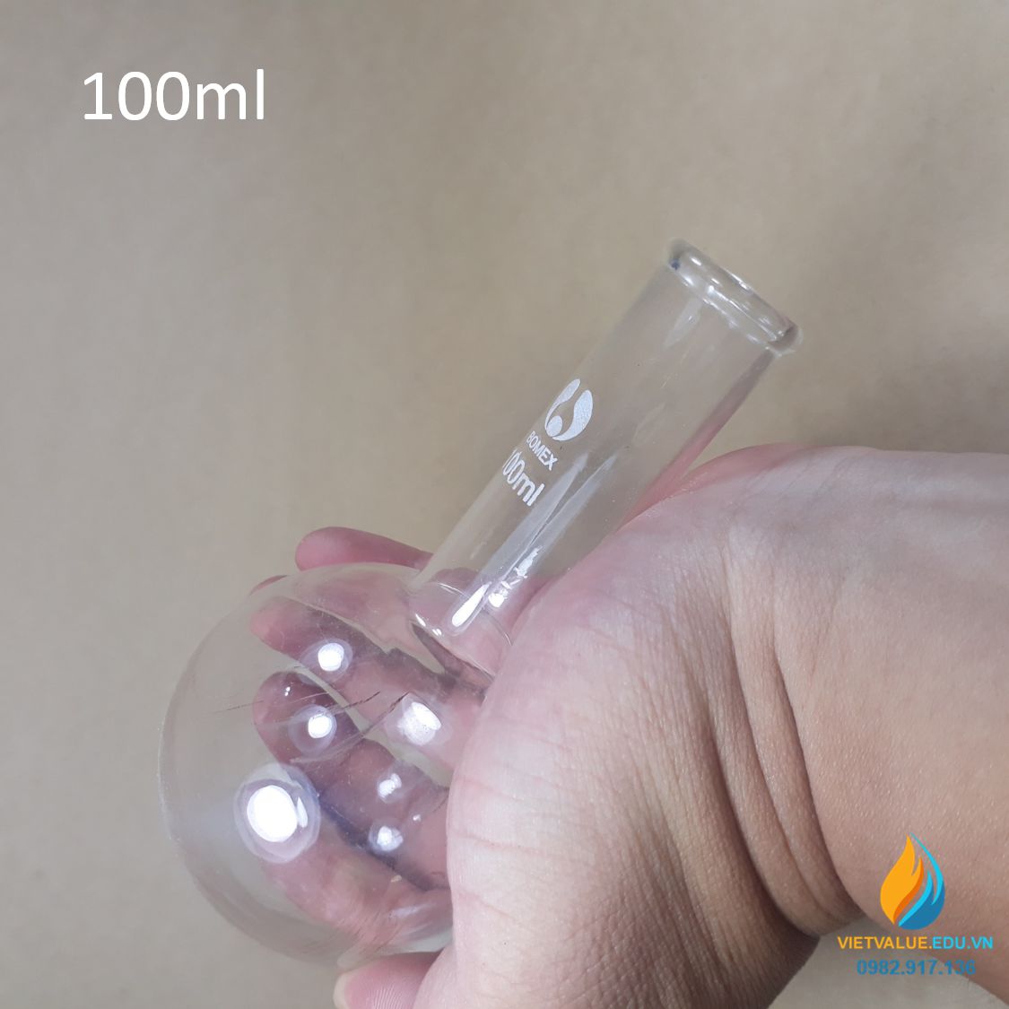 Bình cầu thủy tinh đáy tròn, cổ dài, không có nhánh, dung tích 100ml