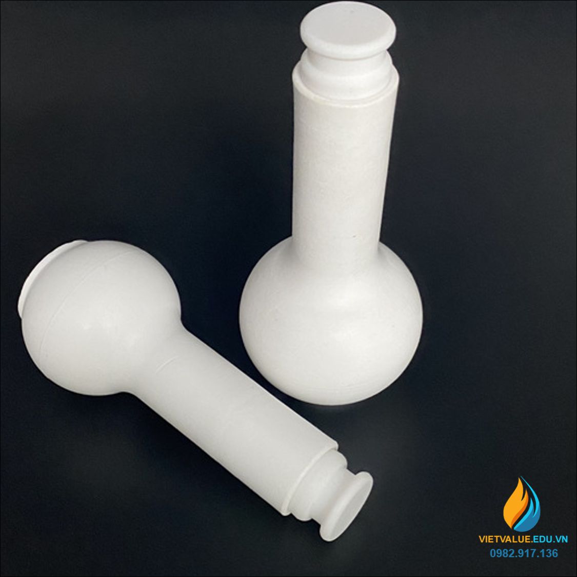 - Bình định mức nhựa PTFE cao cấp, được tinh chế không hề chứa tạp chất, có màu trắng, bề mặt nhựa nhẵn mịn.