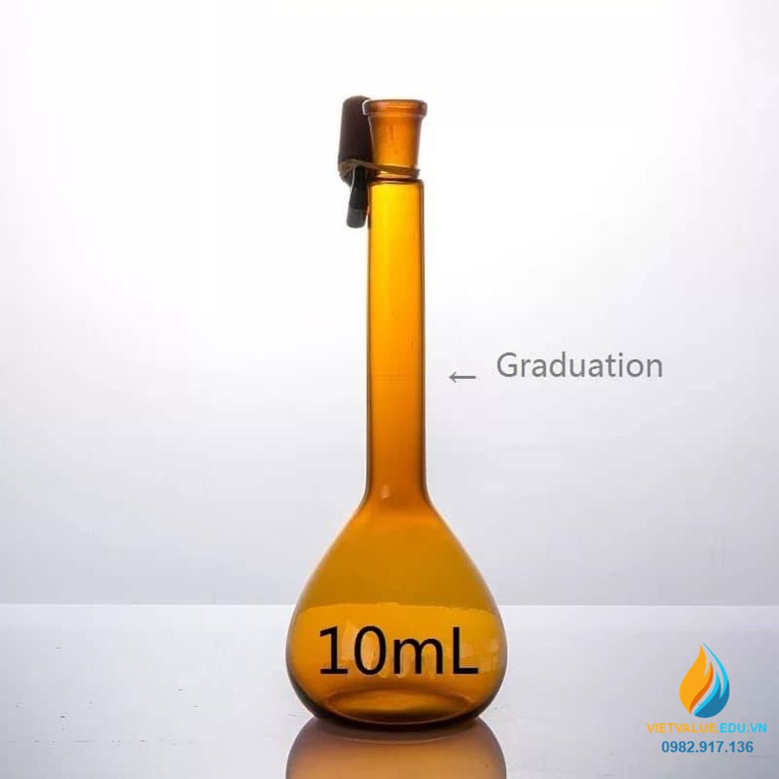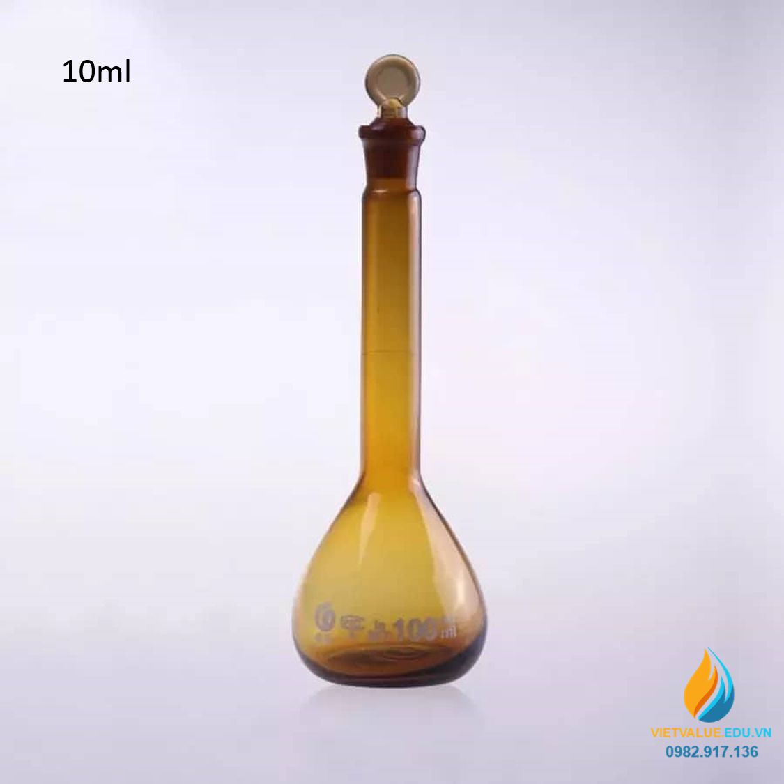 *Mô tả sản phẩm bình định mức thuỷ tinh, màu nâu hổ phách, thành dày, dung tích 10ml: