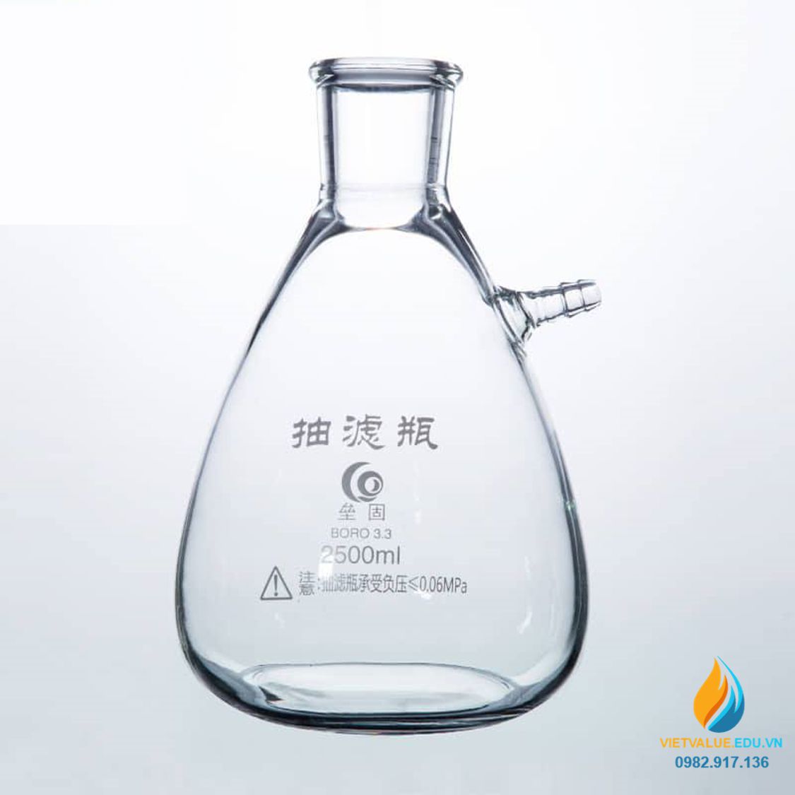 Bình tam giác thủy tinh có vòi chiết ngang, thành dày, dung tích 2500ml