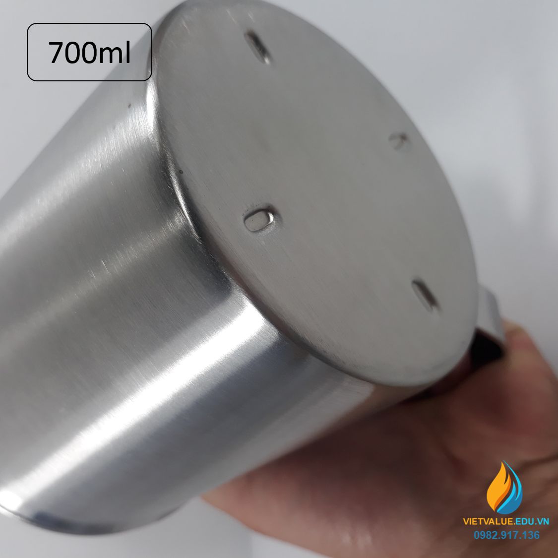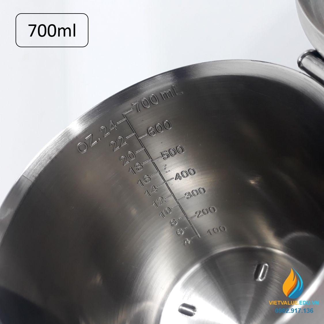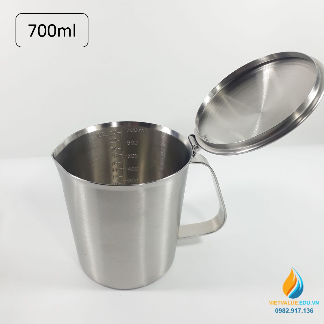 Ca Inox 304 có nắp, dung tích 700ml, vạch chia, có quai, có cỏ rót