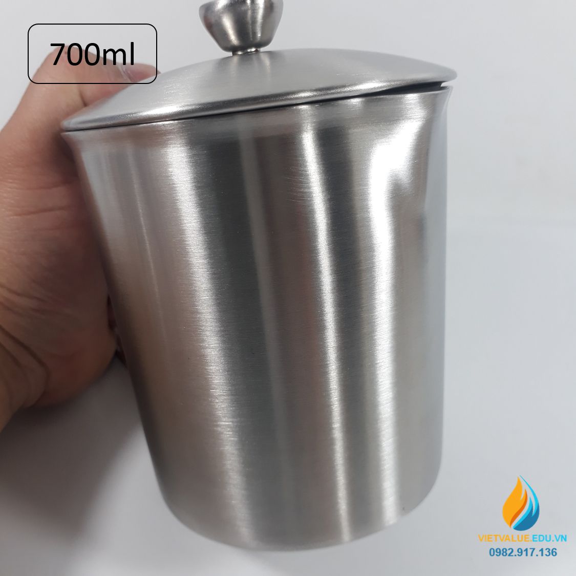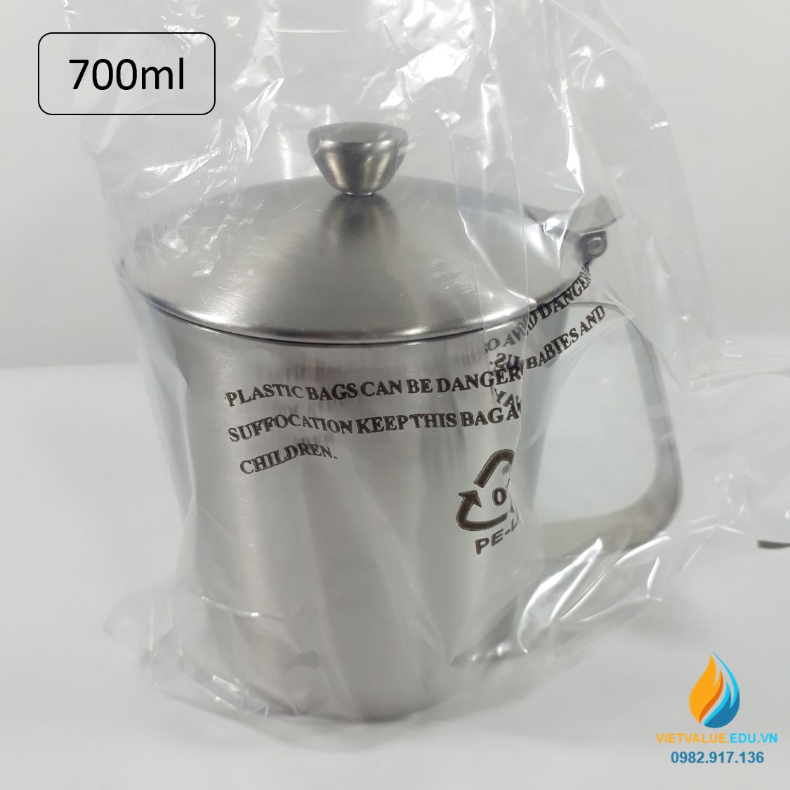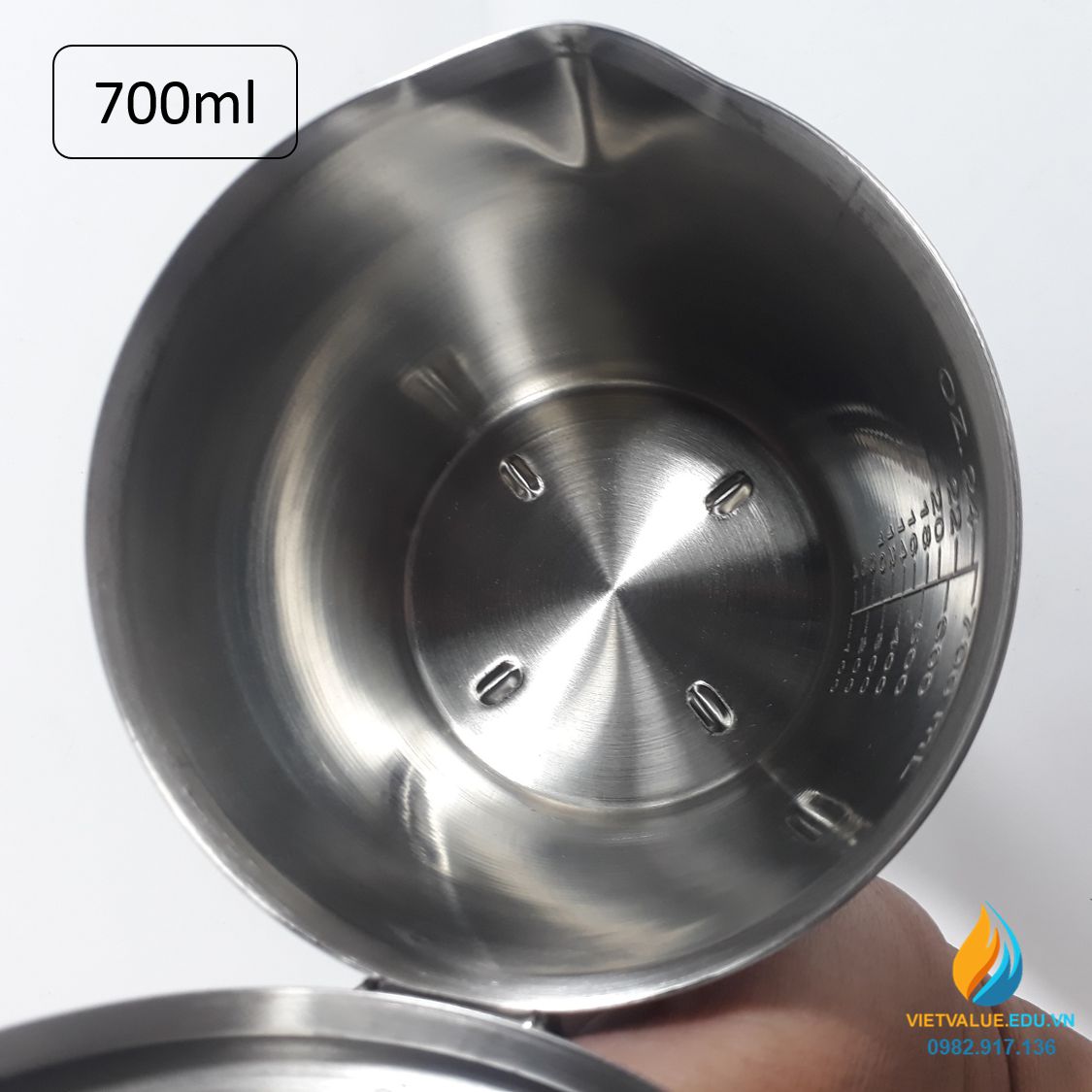 Ca Inox 304 có nắp, dung tích 700ml, vạch chia, có quai, có cỏ rót