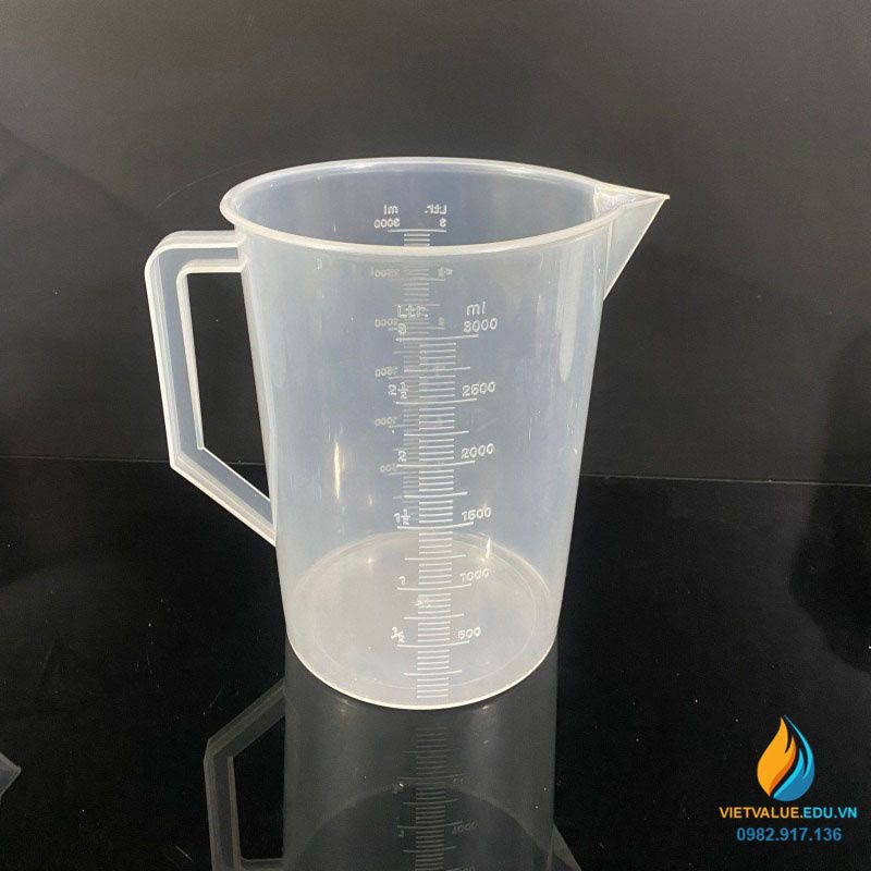 Ca nhựa có nắp 3000ml, có quay chia vạch, được làm từ chất liệu nhựa PP, có nắp đậy kín, có vạch chia chính xác, có tay cầm, dụng cụ không thể thiếu để đong rót định tích