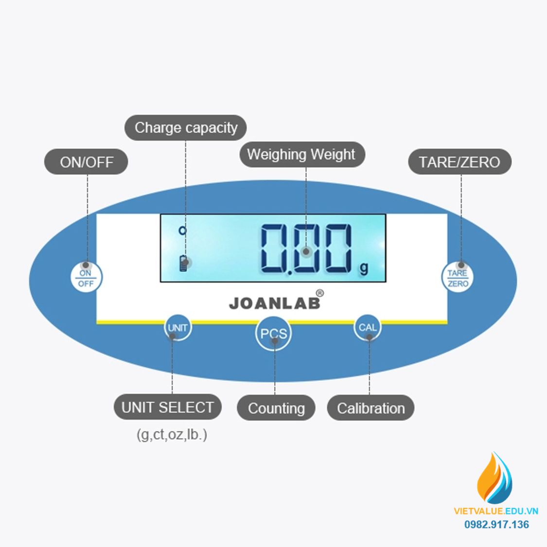 Cân điện tử Joan Lab JNB20002 hiển thị LCD, mức cân 2000 gam, độ chia 0.01 gam