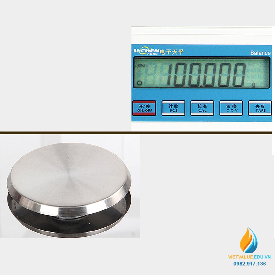 -. Cân được làm từ vật liệu hợp kim tinh tế và có độ bền theo thời gian. Màn hình LCD rộng, đèn nền được chiếu sáng, chữ đen nổi bật cho phép người dùng đọc kết quả dễ dàng ngay cả khi môi trường làm việc có ánh sáng yếu. Lồng kính chắn gió, hạn chế tác động của môi trường bên ngoài đến quá trình cân. Khung lồng kính và đĩa cân được thiết kế tháo lắp chỉ trong vài giây.