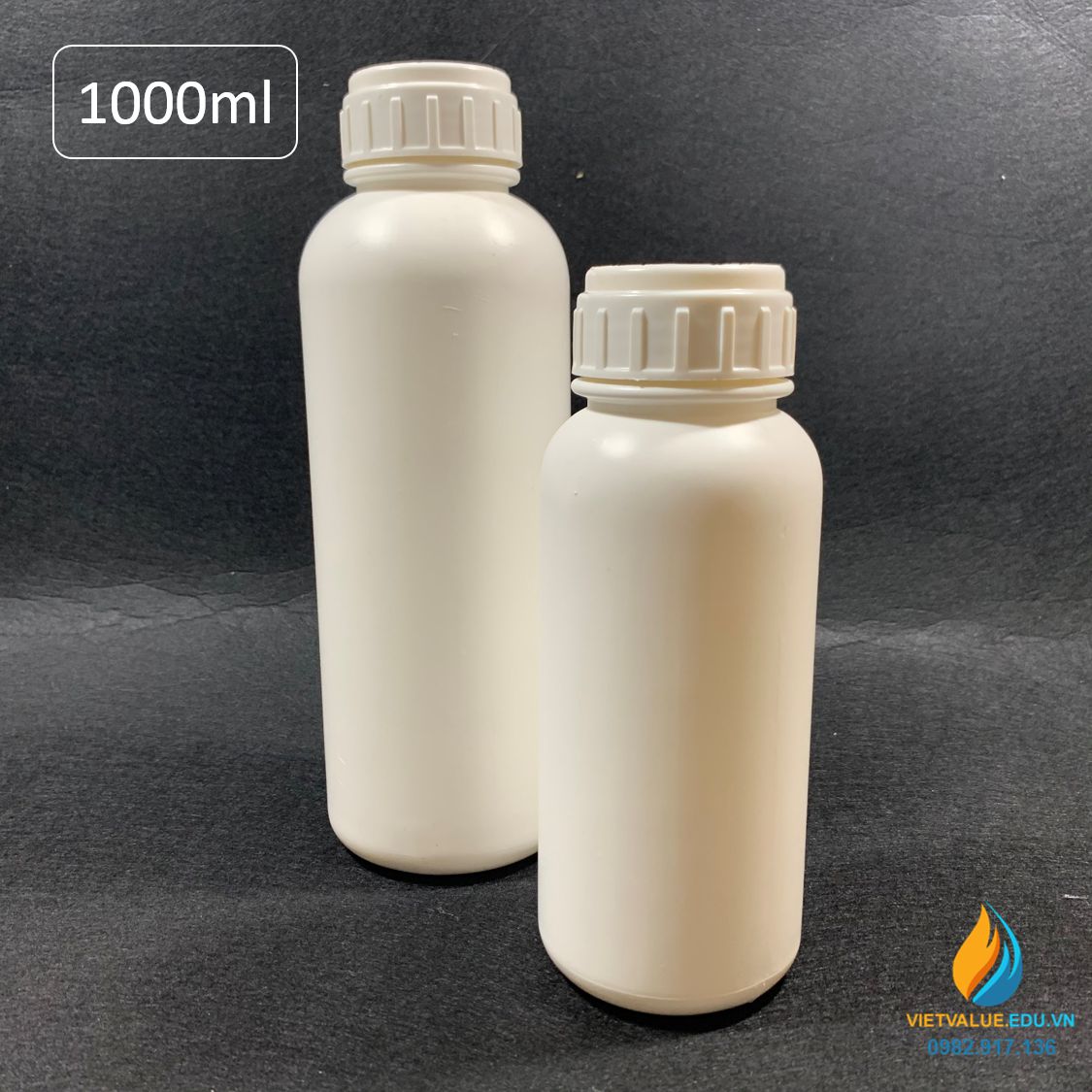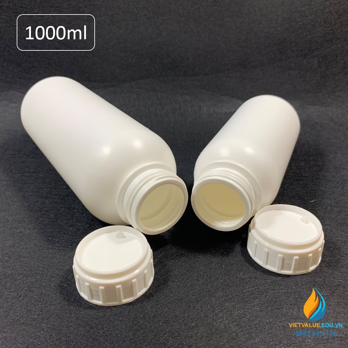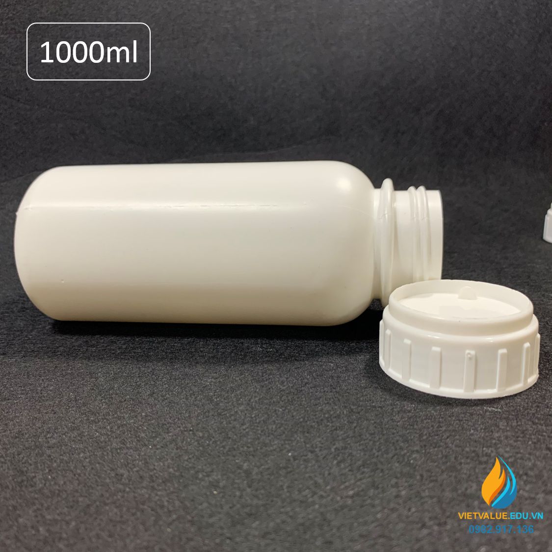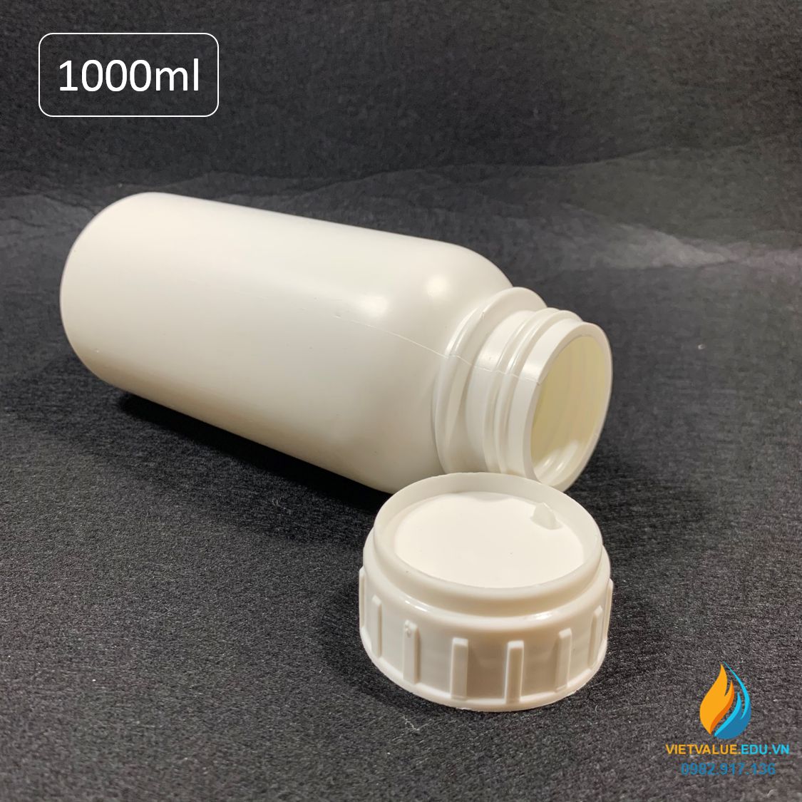 Chai nhựa HPDE dung tích 1000ml, chai nhựa lưu mẫu chất, miệng rộng, vạch chia