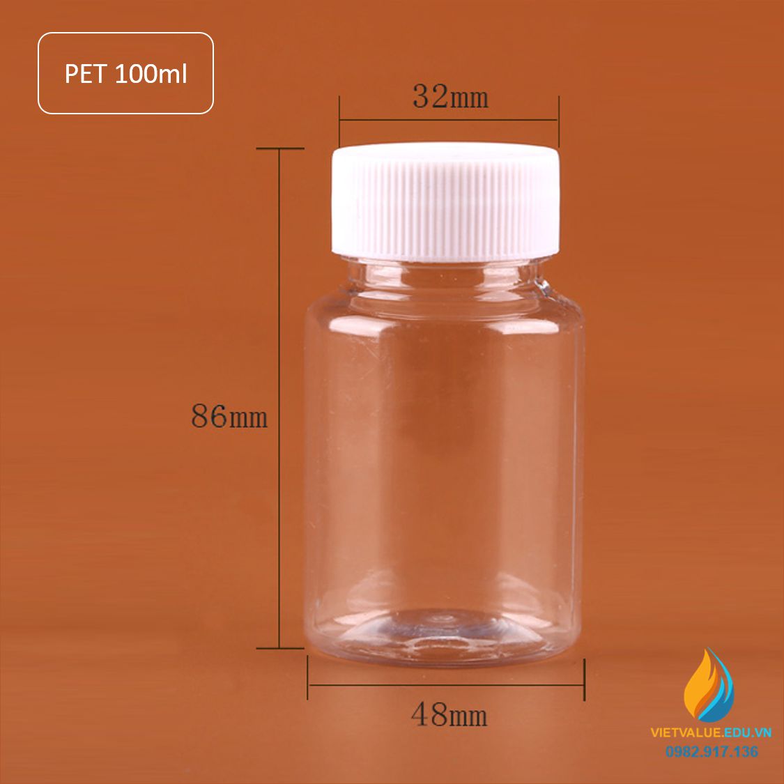 Chai nhựa PET dung tích 100ml, chai nhựa lưu mẫu chất, miệng rộng, vạch chia