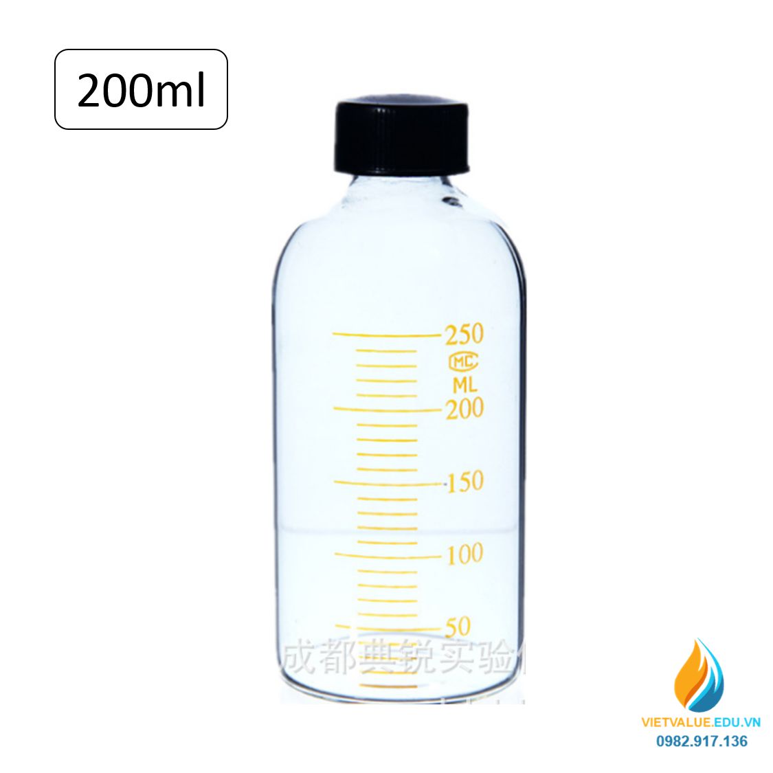 Chai thủy tinh đựng huyết thanh, miệng vít kín, vạch chia, dung tích 200ml