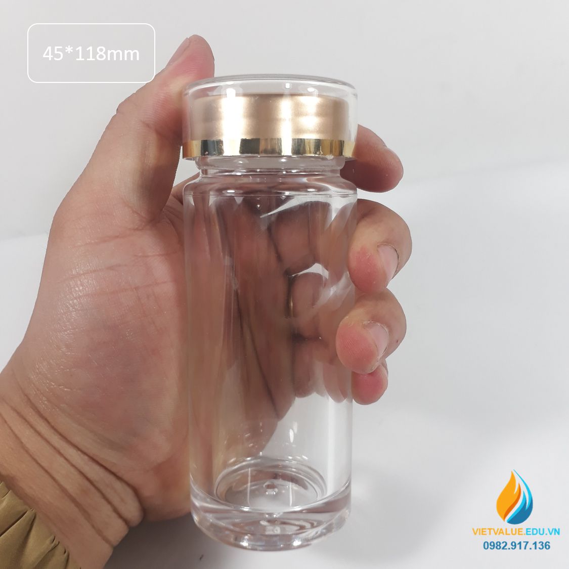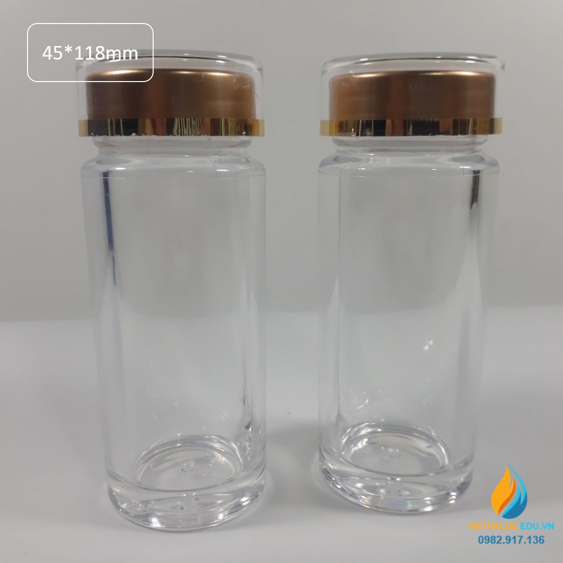 Chai thủy tinh lưu mẫu cao cấp, kín khí, kích thước 45*118mm, thủy tinh trong suốt cao cấp