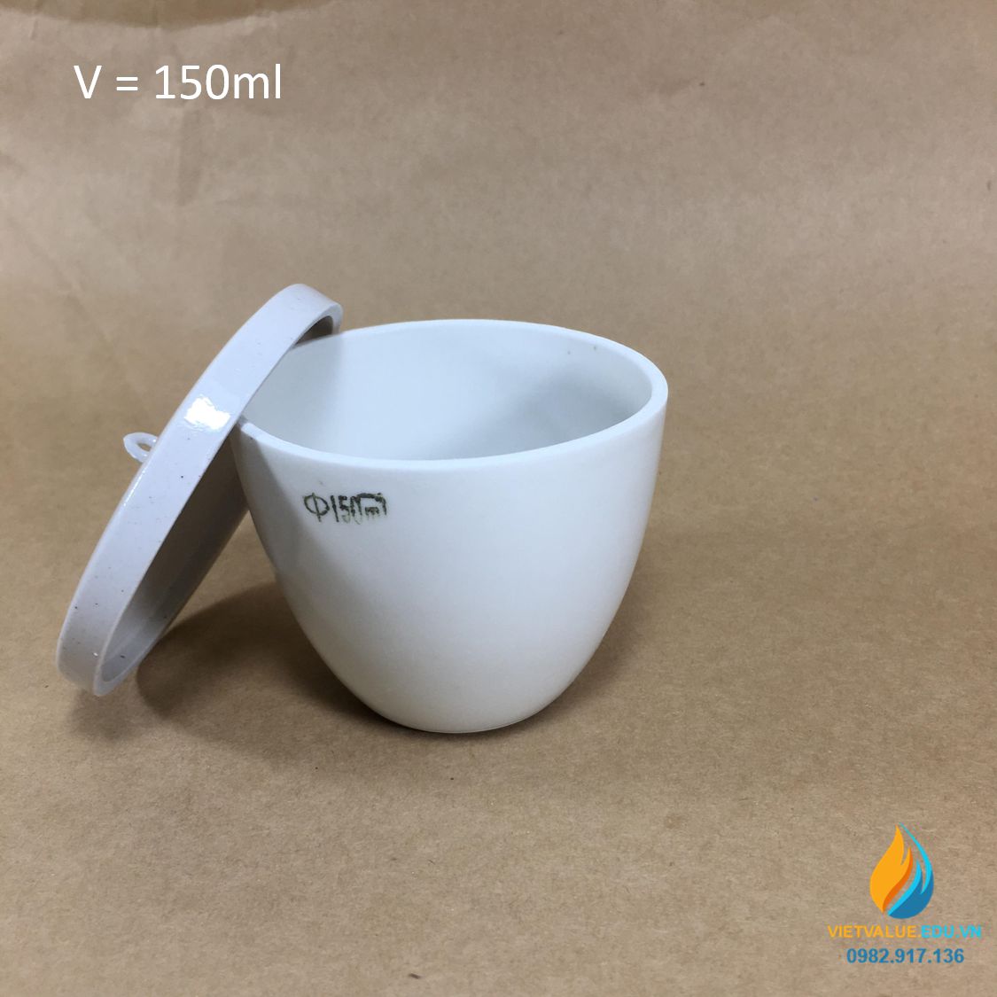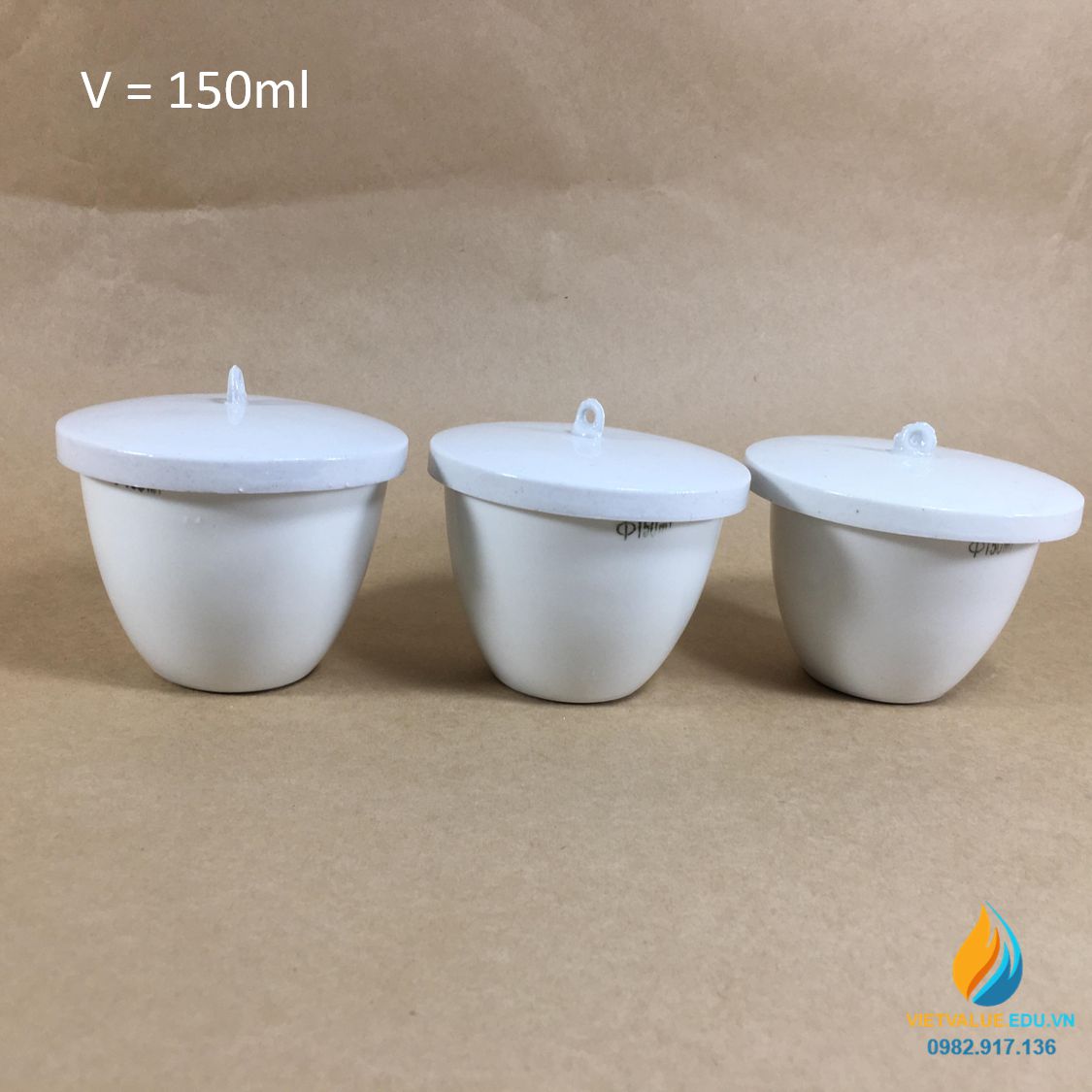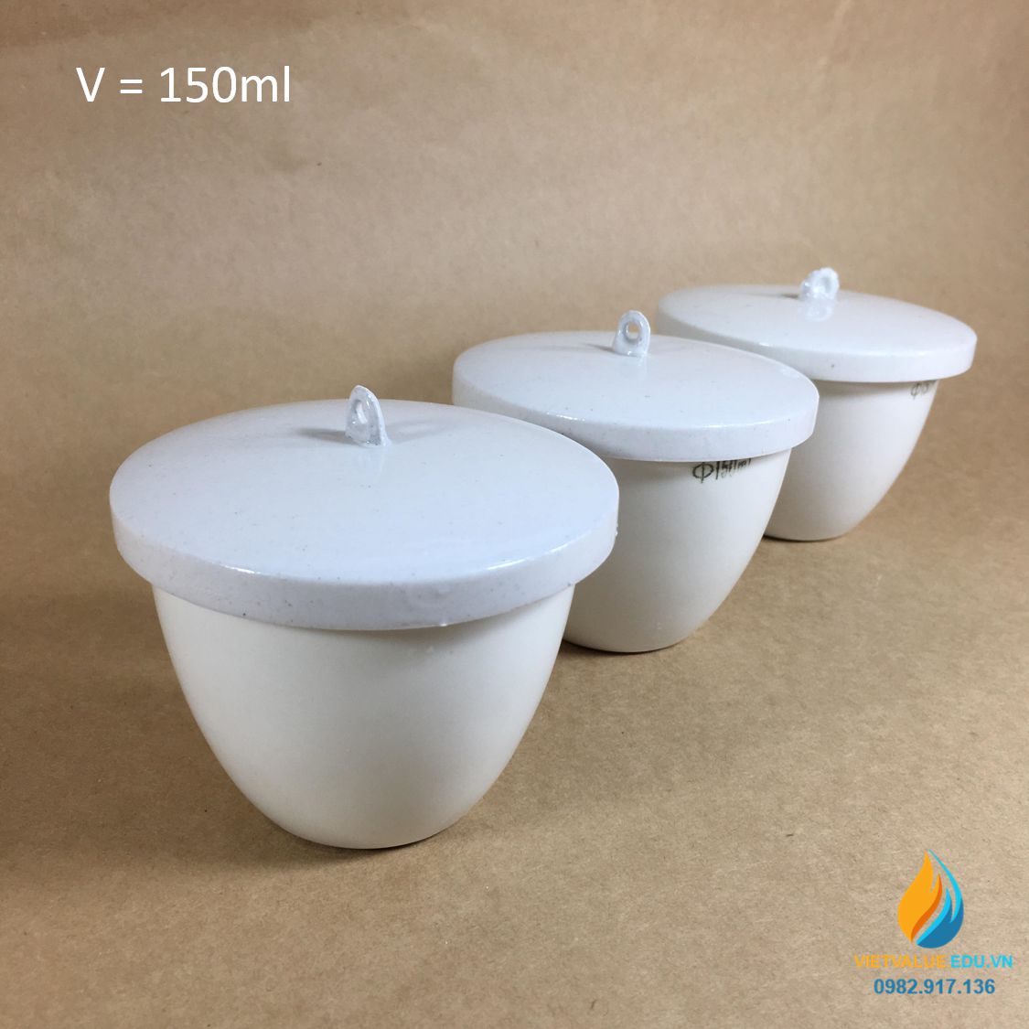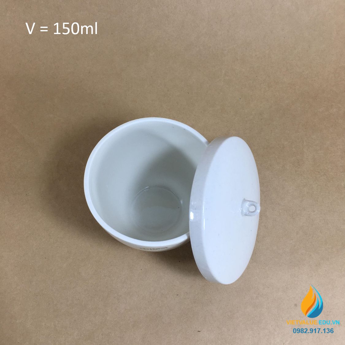 Chén sứ nung phòng thí nghiệm, dung tích 150ml, có nắp thành cao