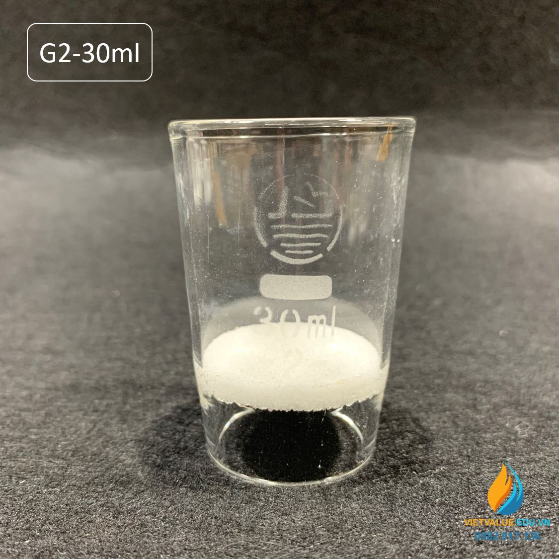 - Cốc lọ xốp G2 30ml được làm bằng các dụng cụ thủy tinh hóa học có kết cấu tuyệt vời và có tính chất hóa lý tốt. Nó phù hợp để lọc các chất khác nhau trong phân tích hóa học, kiểm tra vệ sinh, công nghiệp dược phẩm, sản phẩm sinh học và các khía cạnh khác.