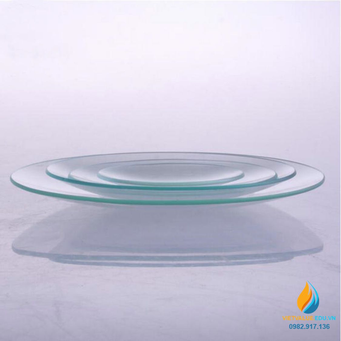 - Đĩa được làm bằng chất liệu thủy tinh trong suốt, khả năng chịu nhiệt cao, thành dày lên đến 3mm, chắc chắn có khả năng chịu và đập cơ học tốt, bề mặt đĩa nhẵn dễ dàng lau chìu sau khi sử dụng.