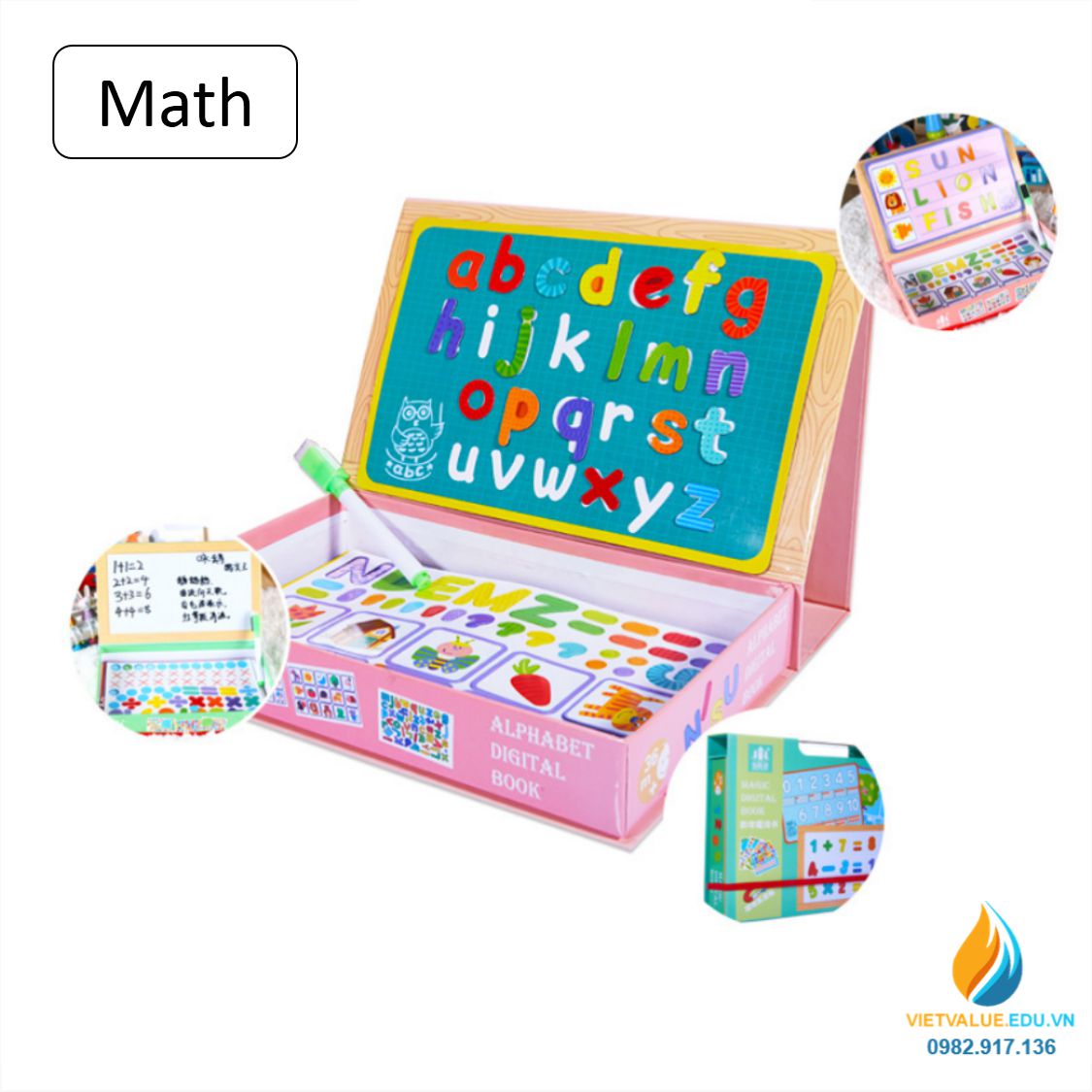 - Sản phẩm được làm từ cao su tổng hợp, kết hợp các vật liệu có từ tính, hộp chưa có bảng, gắn dễ dàng các chữ cái và con số lên đó, bộ đồ chơi giúp bé thao tác theo các yêu cầu của giáo viên.