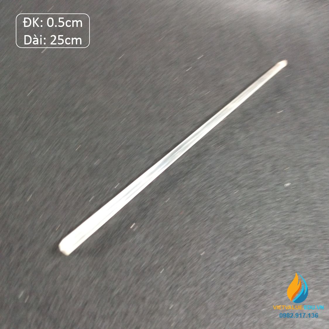 Đũa khuấy hóa chất bằng nhựa PC trong, đường kính 0.5cm, chiều dài 25cm