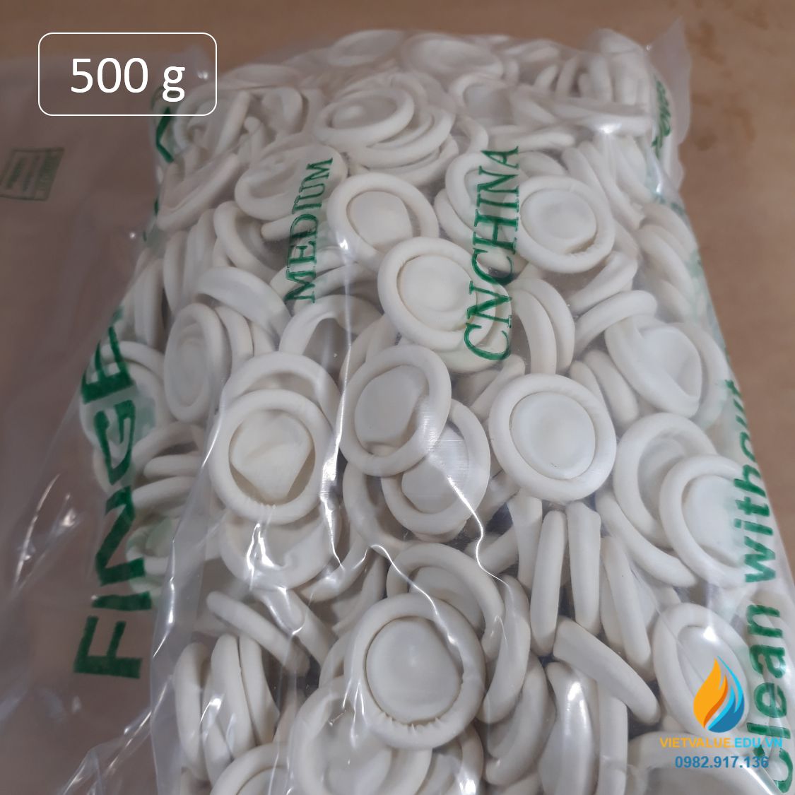 Găng tay ngón dùng một lần, Găng tay xỏ ngón cao su tự nhiên, túi 500 gam