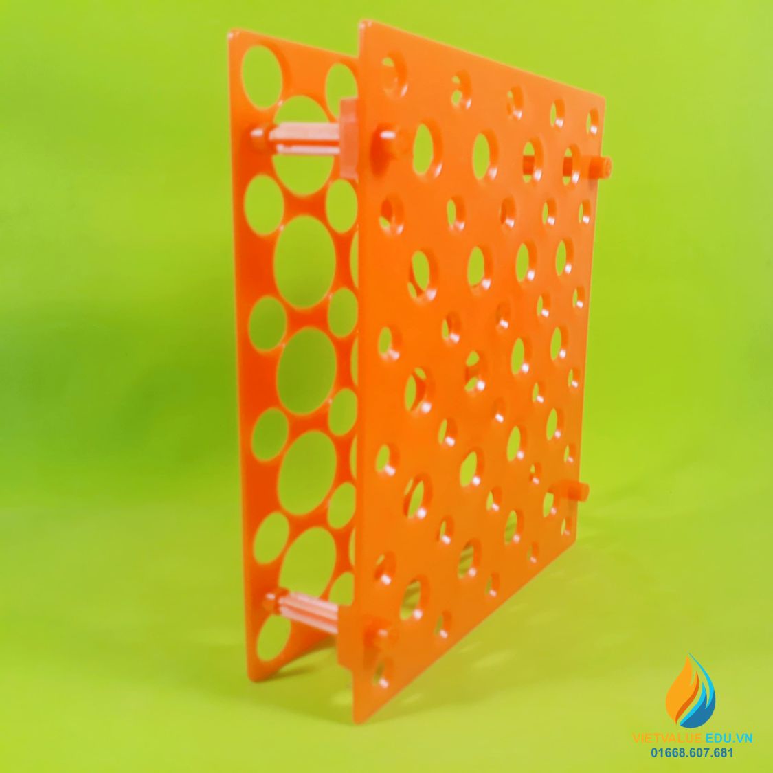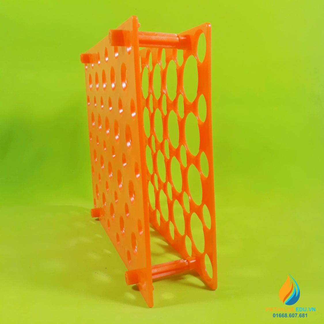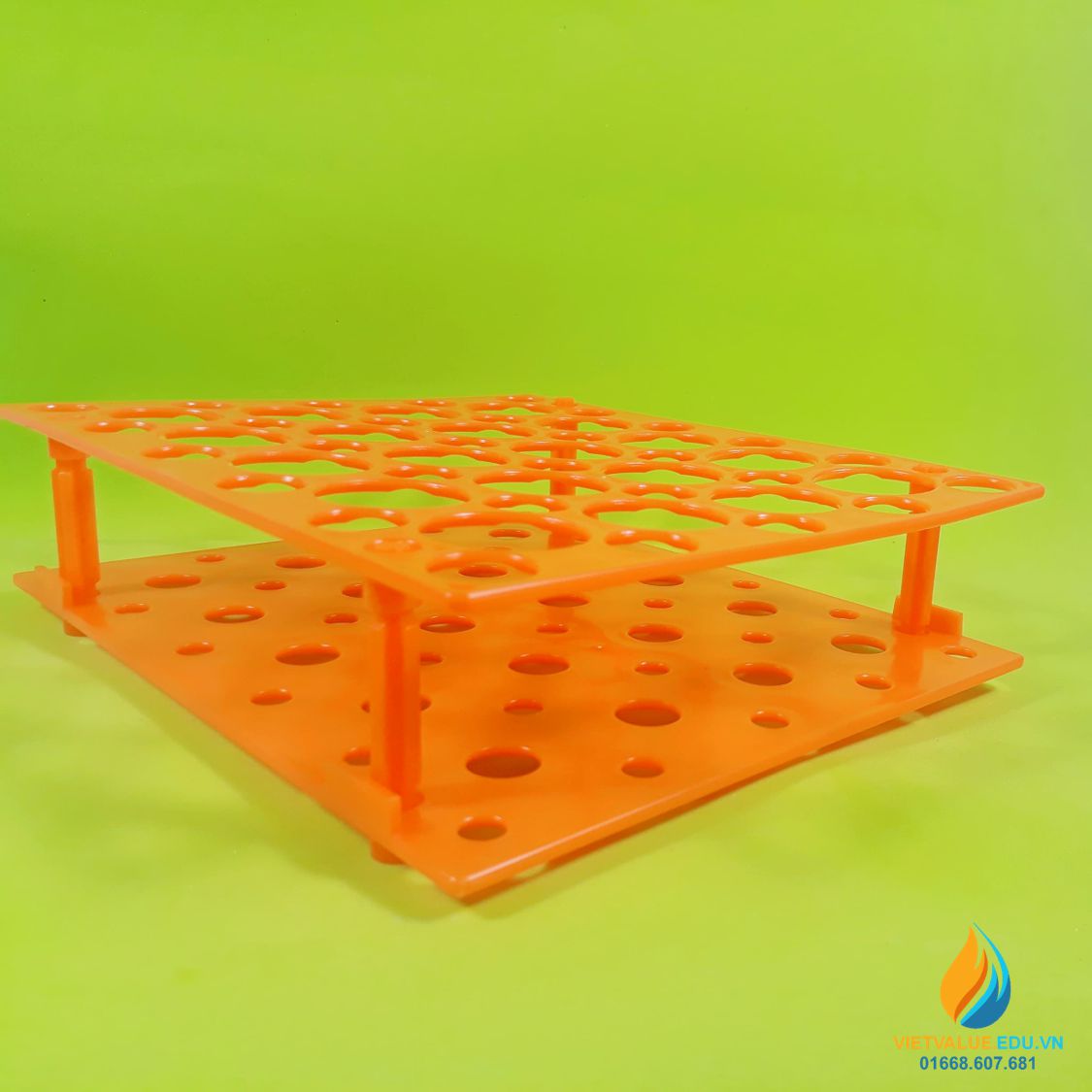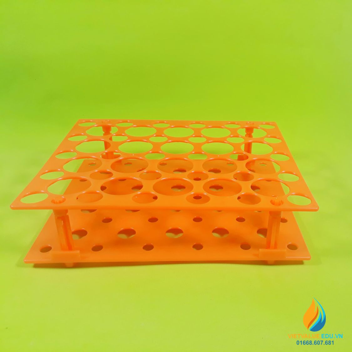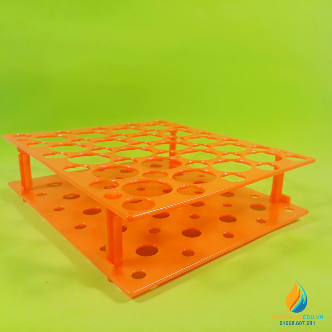 - Chất liệu của giá đựng ống nghiệm, ống li tâm được làm từ nhựa PP, màu cam, sáng bóng, bền đẹp.