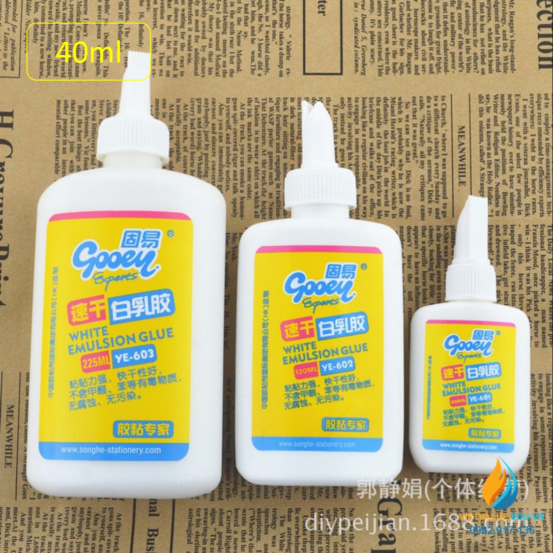 - Keo dán YE601 có nhiều dung tích cho bạn lựa chọn: Lọ keo dính dung tích 10ml cao 10 cm khối lượng tịnh khoảng 50 gam. Lọ keo dính 120ml, dài 14 cm khối lượng tịnh 146 gam, lọ kep dung tích 225ml cao 16,5 cm khối lượng tịnh của lọ keo khoảng 260 gam