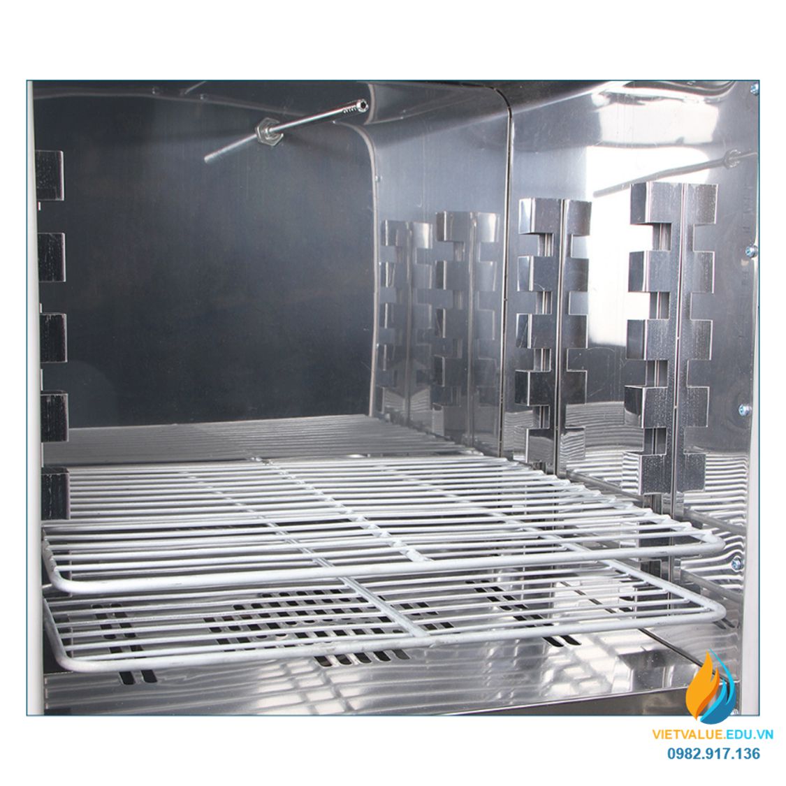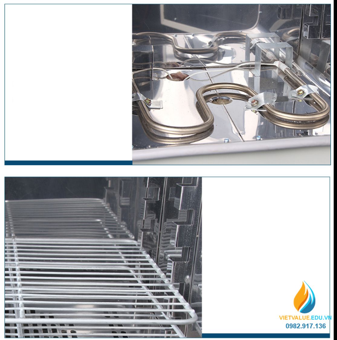 - Thông số: công suất 0.4KW, điện áp 220V HZ, kích thước tủ 50cmx47cmx67cm, kích thước lót 35x35x35 (cm), nhiệt độ hoạt động từ 5-40 độ , sai số trên dưới 0.1 độ, có dung tích bên trong là 36l lớn để sử dụng cho các mục đích.