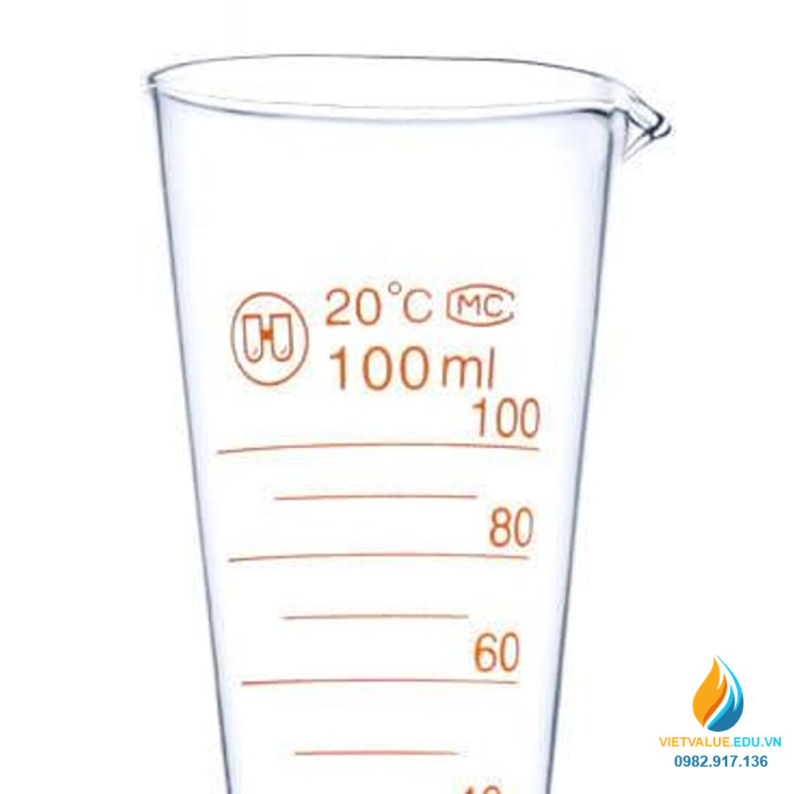 Ly đong hóa chất, thủy tinh trong suốt, chia vạch, dung tích 100ml