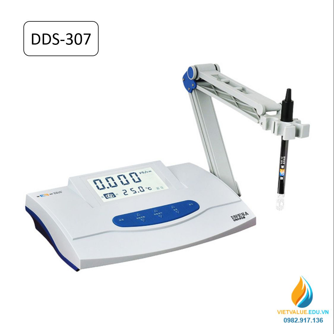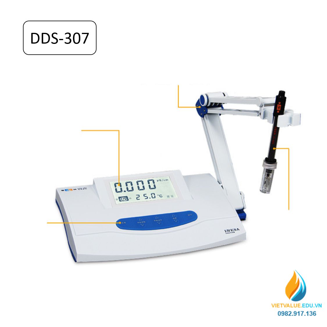 - Máy đo độ dẫn điện model DDS-307 là dụng cụ đo độ dẫn điện của dụng dịch để bàn, dễ dàng sử dụng với màn hình hiển thị kết quả dạng LCD, có đèn trợ sáng dễ dàng quan sát hơn, khả năng tự động bù nhiệt với sai số thấp