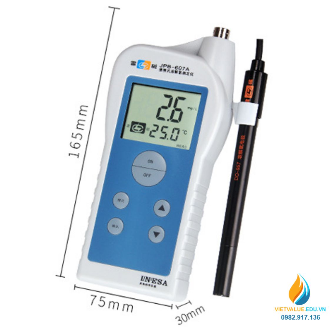 - Thông số kĩ thuật: Phạm vi đo là oxy hòa tan: (0,0 ~ 199.9) mg / L; sự cân băng nhiệt độ: Tự động (0.0 ~ 40.0) ° C; thời gian đáp ứng: 45s; độ chính xác: Oxy hòa tan: ± 0,30 mg / L và Nhiệt độ: ± 0.5 ° C ± 1 chữ số. Kích thước 210x86x50 (mm).