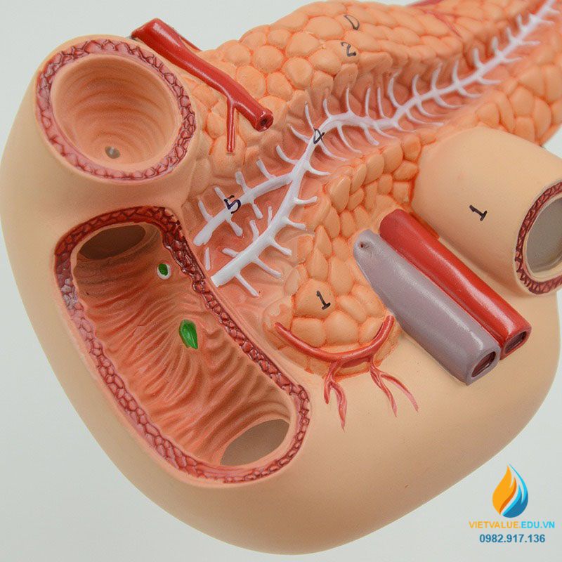 - Mô hình giải phẫu gan mật, tuyến tụy, lá lách, túi mật và tá tràng được chế tạo với các chi tiết tỷ mẫn, màu sắc rõ nét, giúp học sinh quan sát và tiếp thu kiến thức tốt.