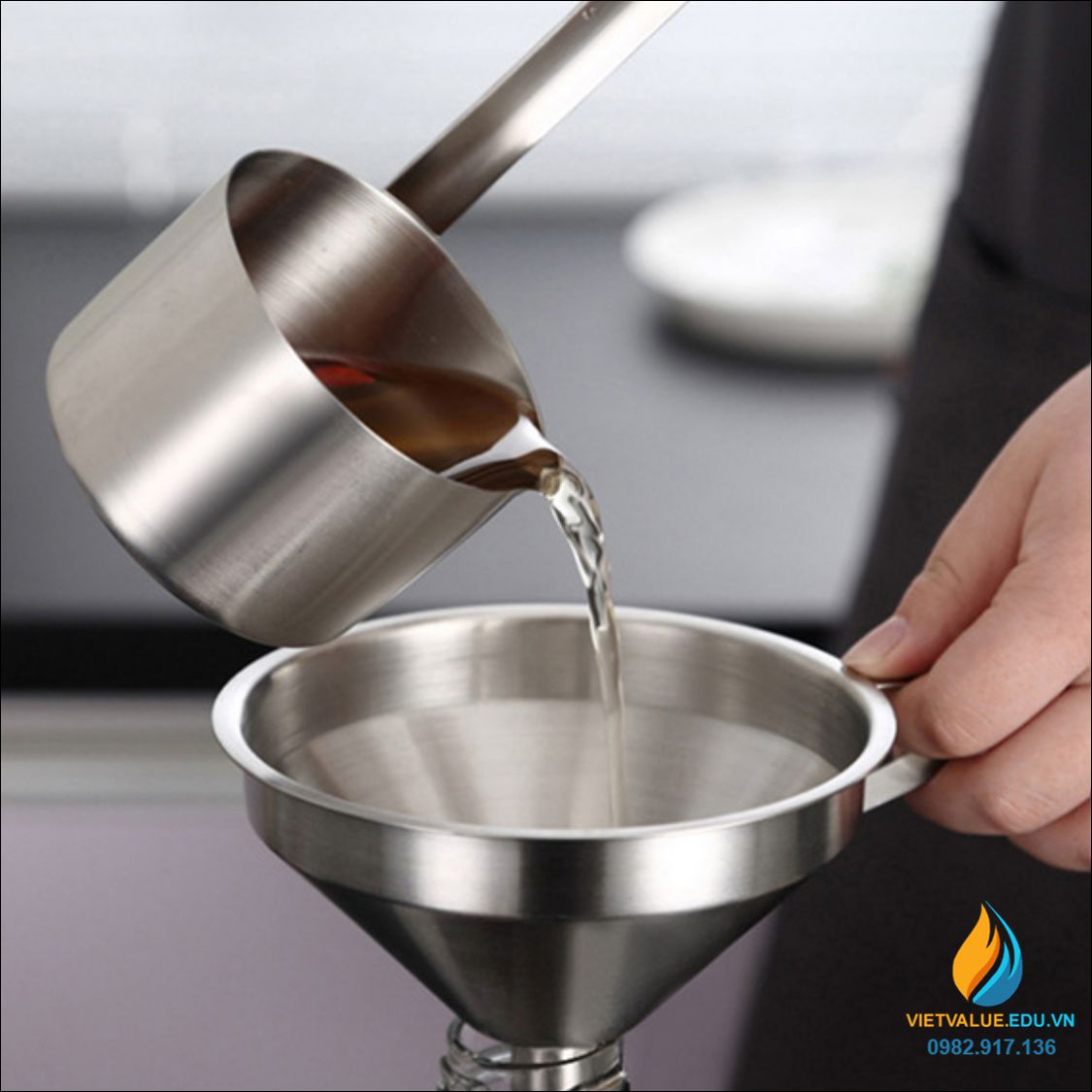 Muỗng đong dung dịch lỏng 125ml, chất liệu Inox 304 không gỉ, cán dài, có mỏ rót