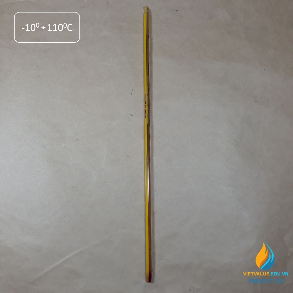 Nhiệt kế cồn khoảng đo từ -10 đến 100 độ C, dài 30cm, vạch chia 1 độ C