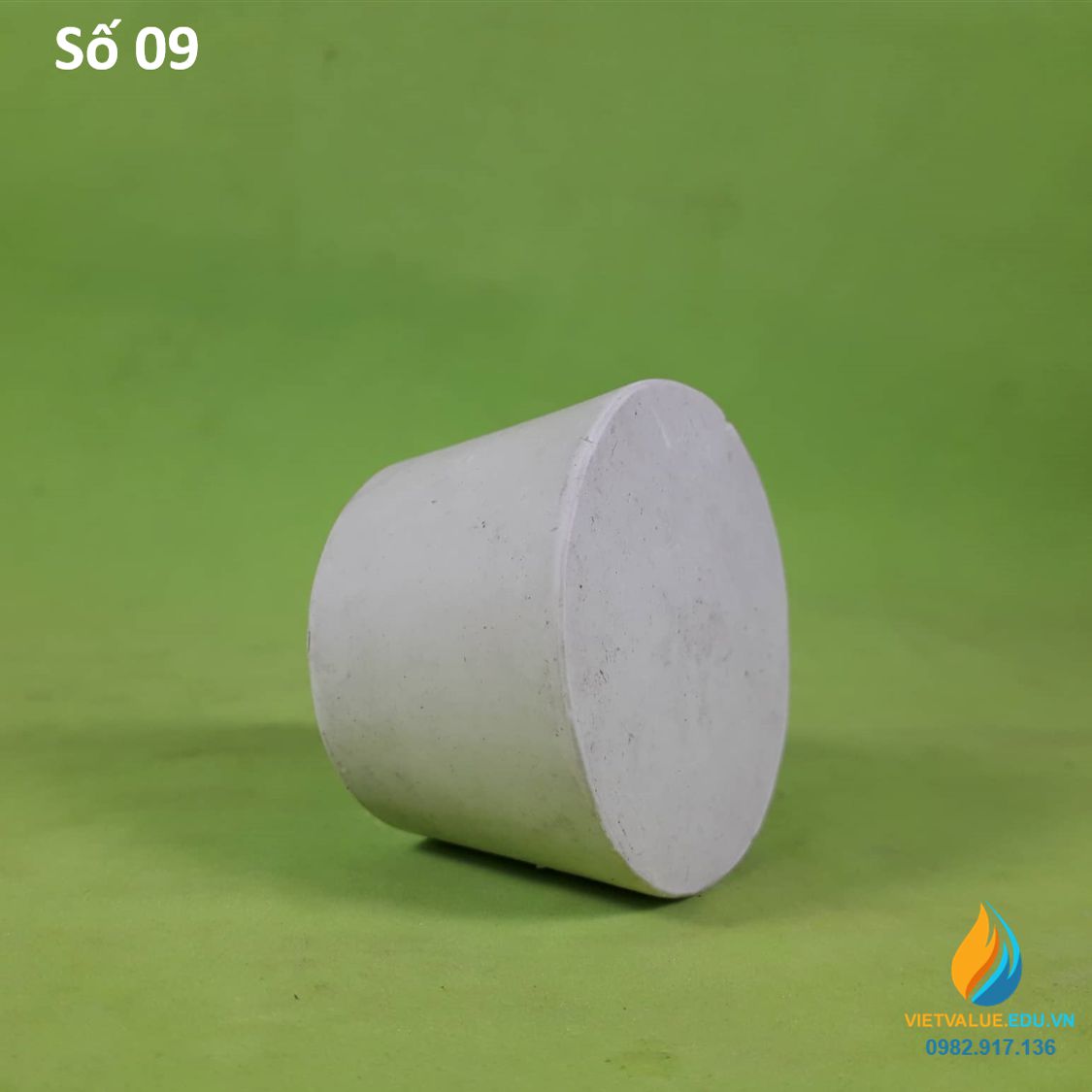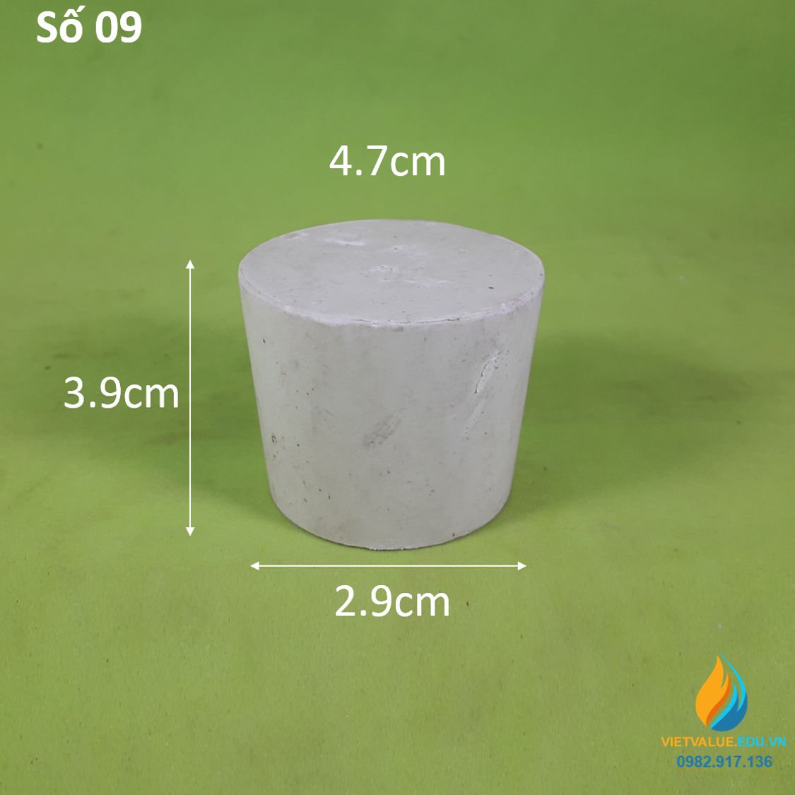 Nút cao su số 09: đường kính đáy lớn 4.7cm; đường kính đáy bé 3.9cm; chiều cao 2.9cm;
