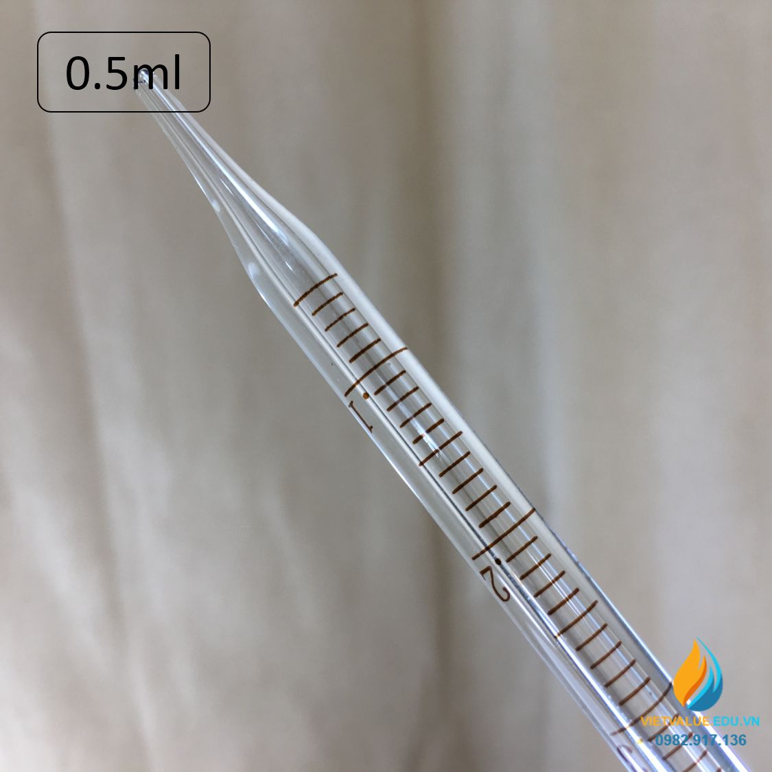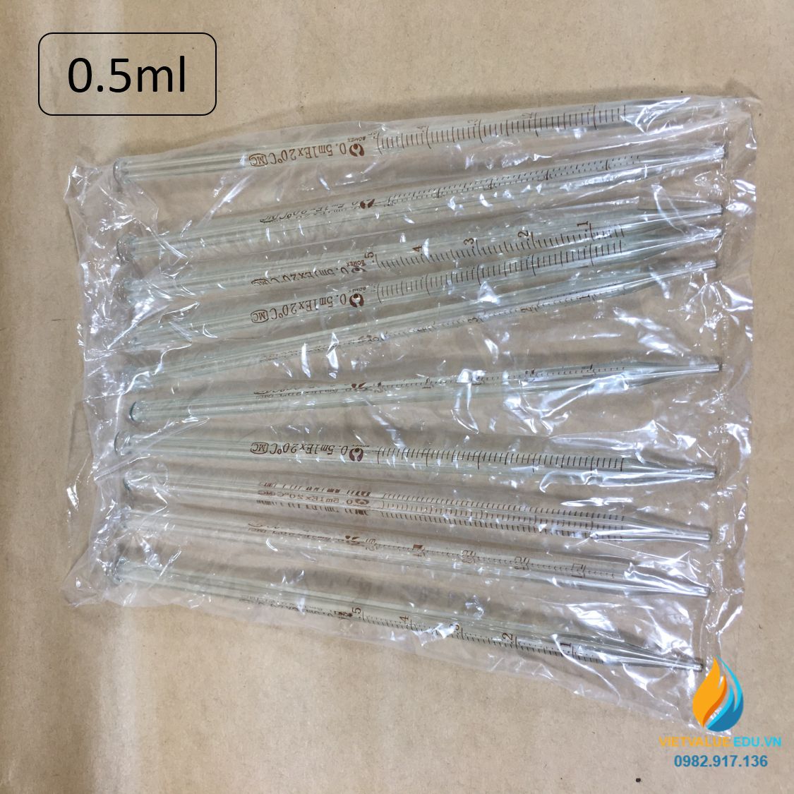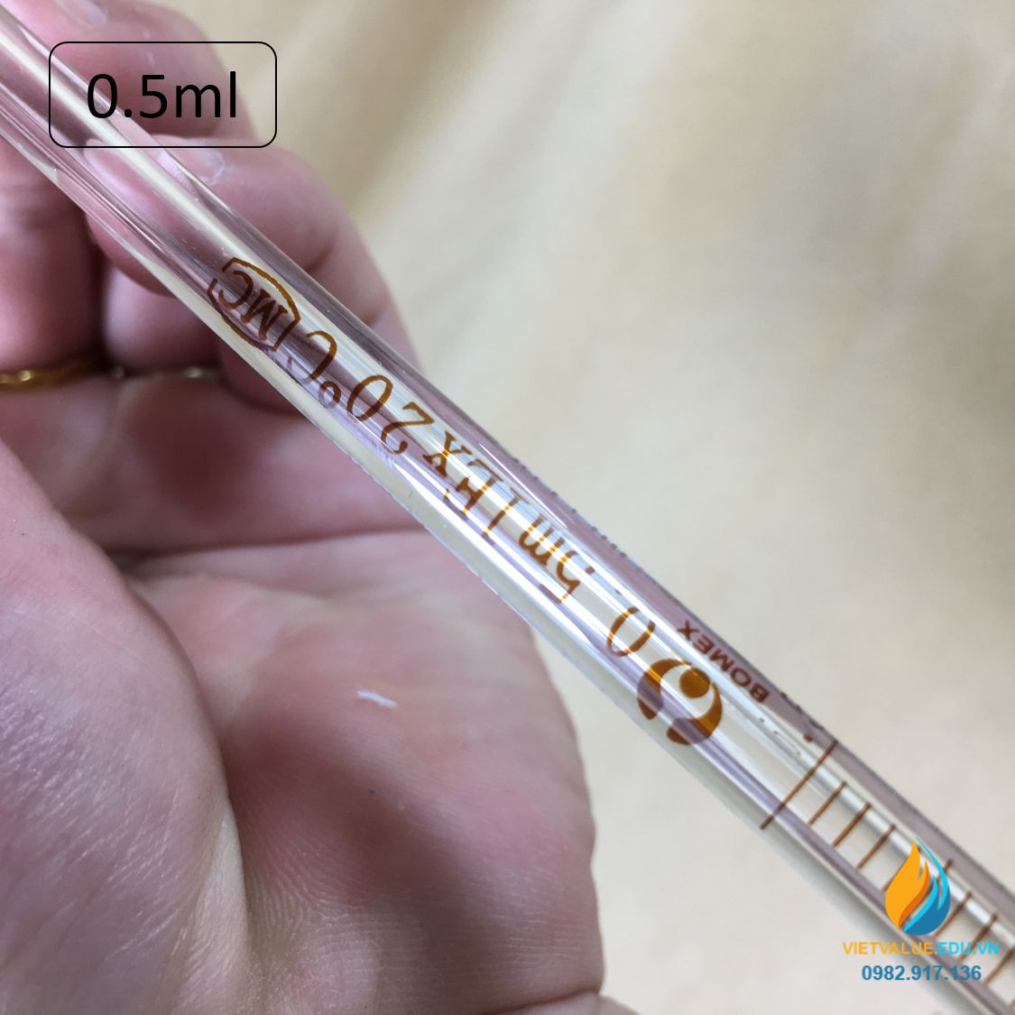 + Mô tả ống hút thủy tinh vạch chia 0,5ml: