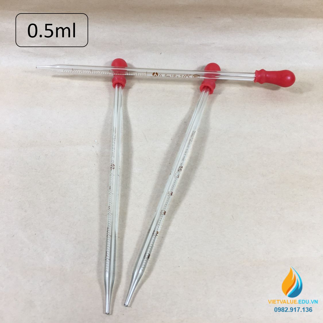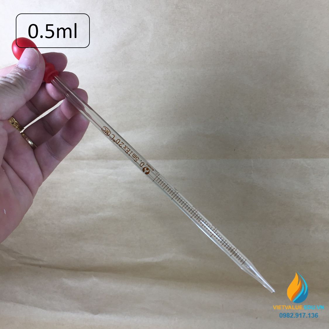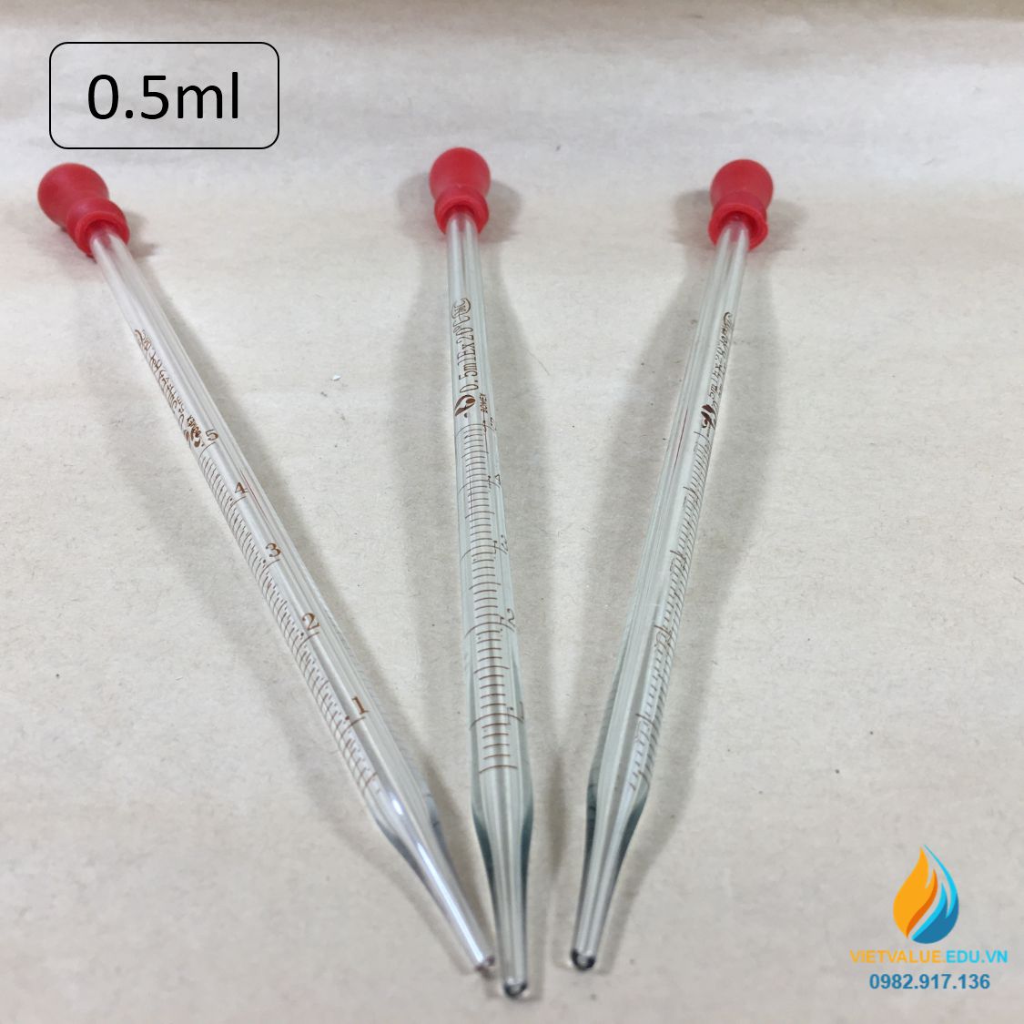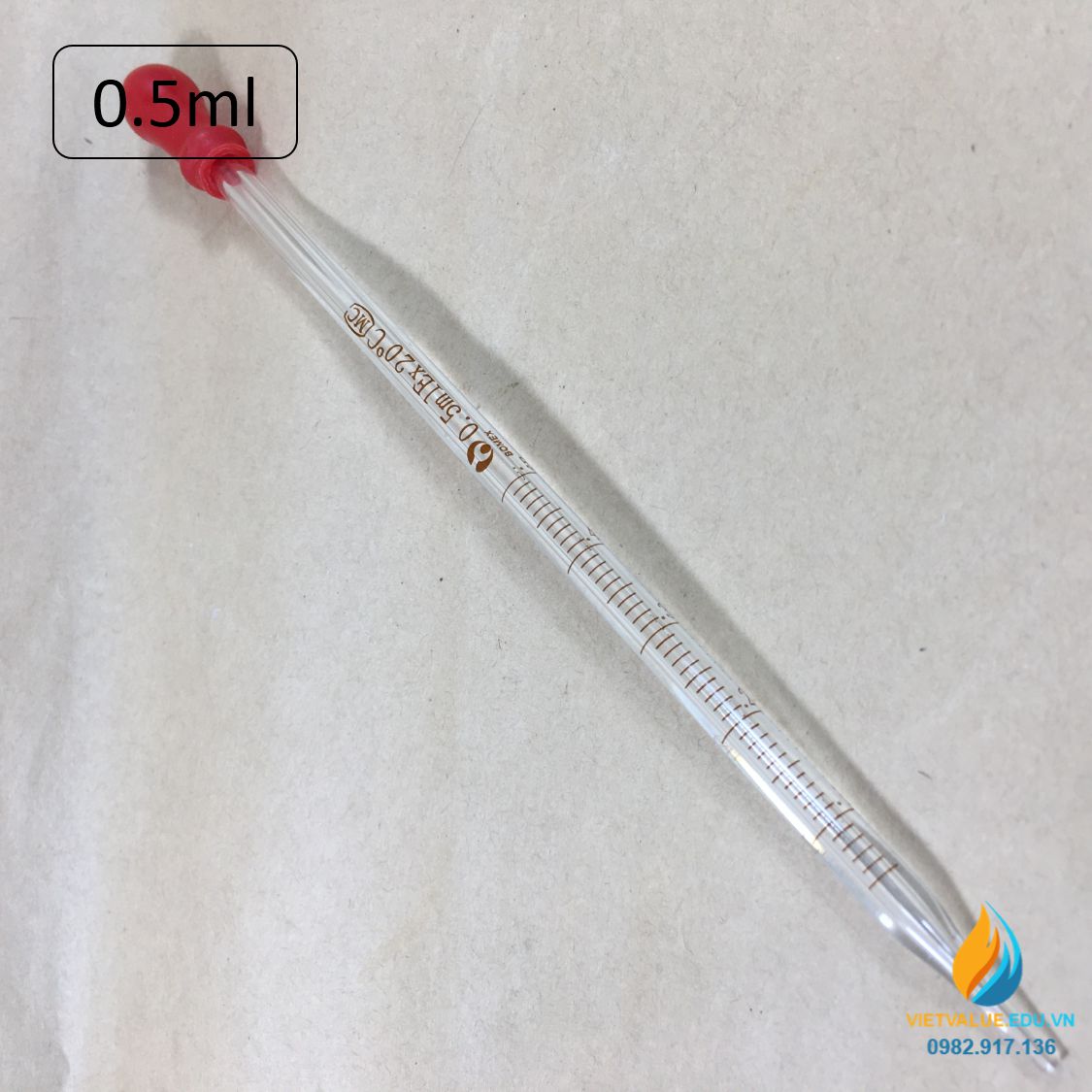 + Mô tả ống hút thủy tinh vạch chia 0,5ml: