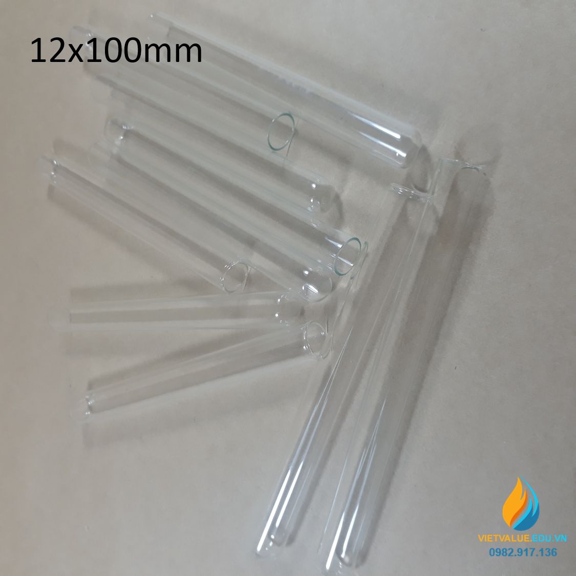 Ống nghiệm thủy tinh, không chia vạch, không nắp, 12x100mm