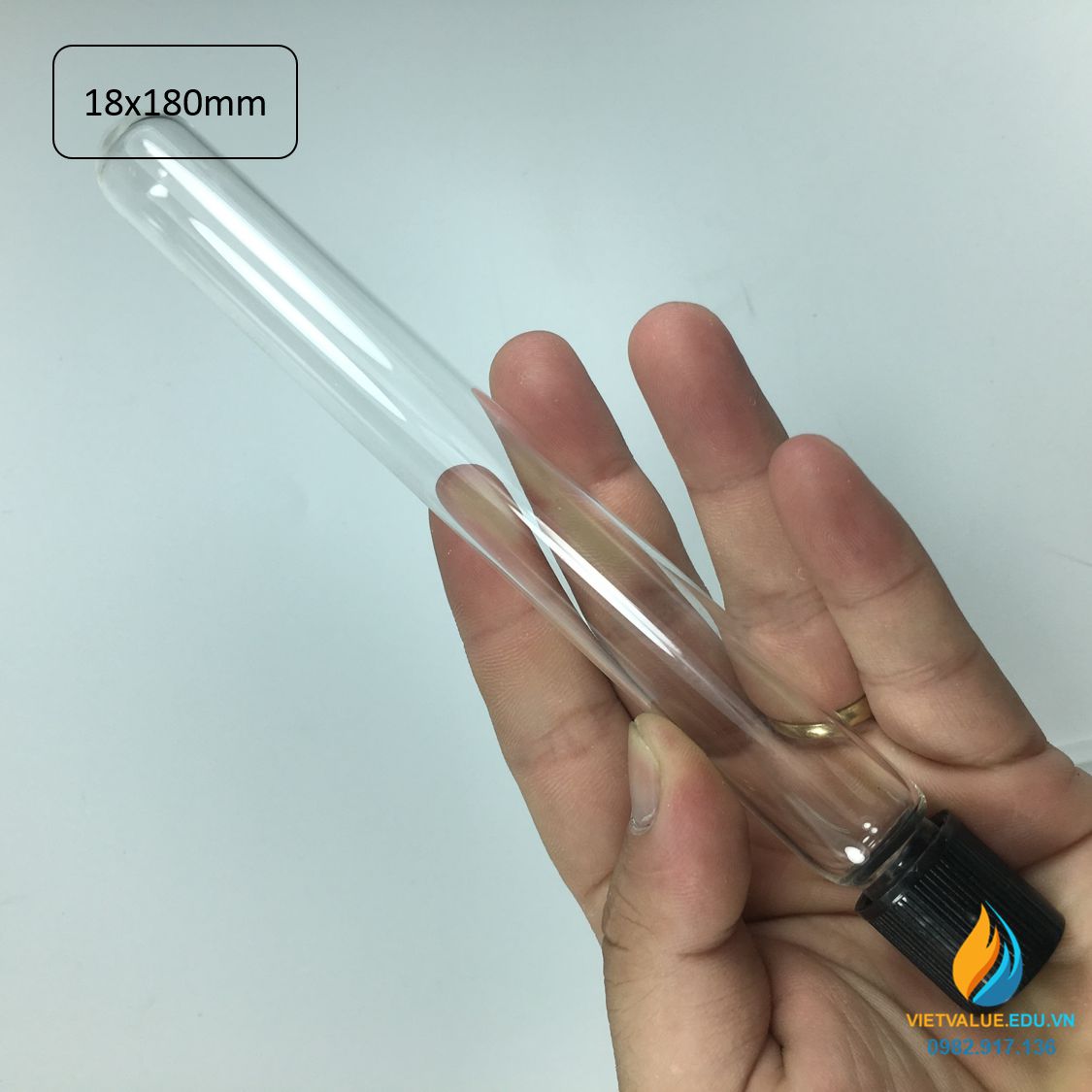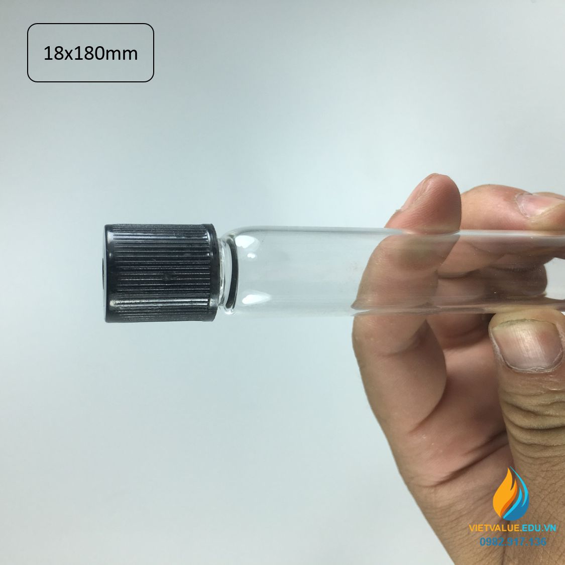 Ống nghiệm thủy tinh kỵ khí kích thước 18mm x 180mm nút cao su, nắp xoáy, kín khí