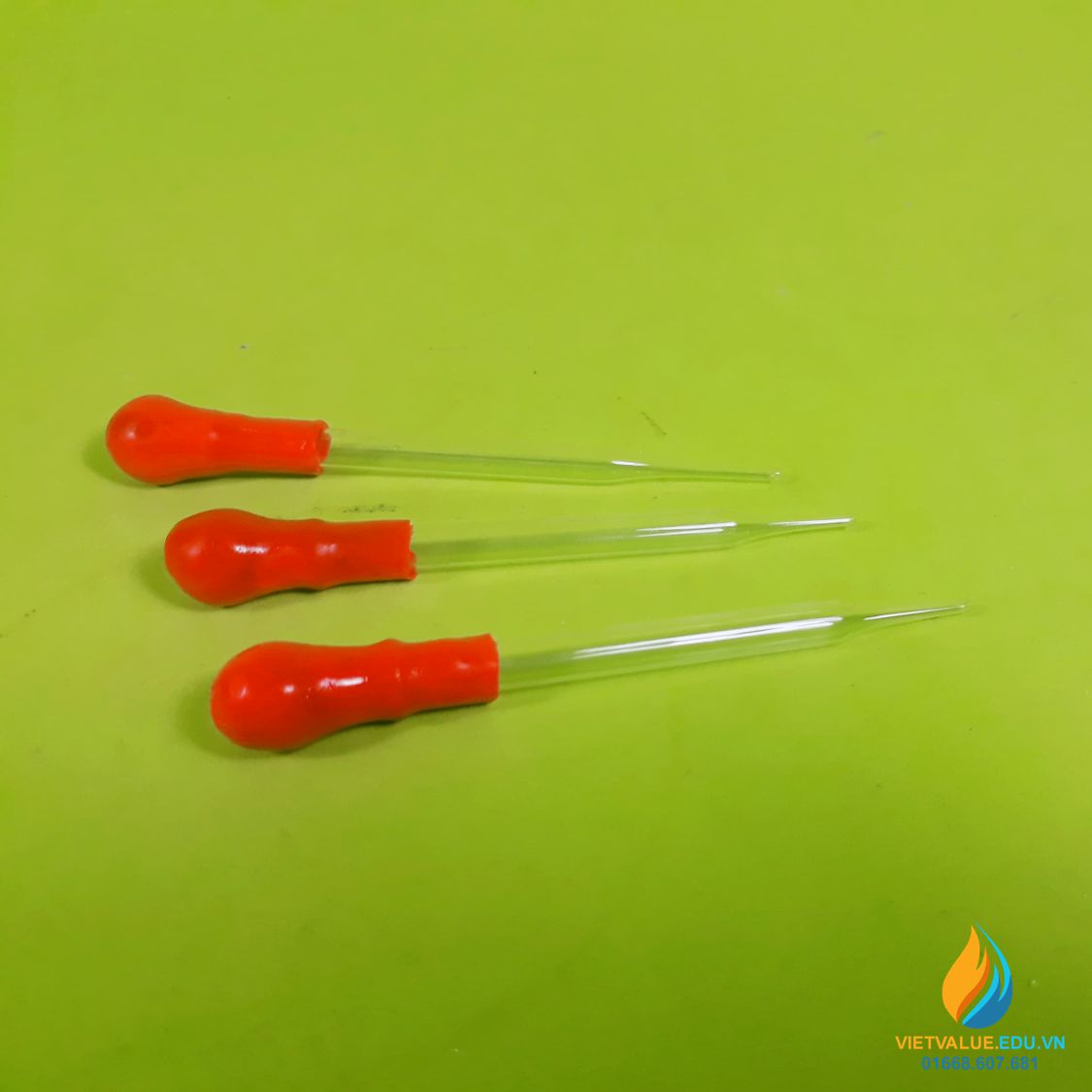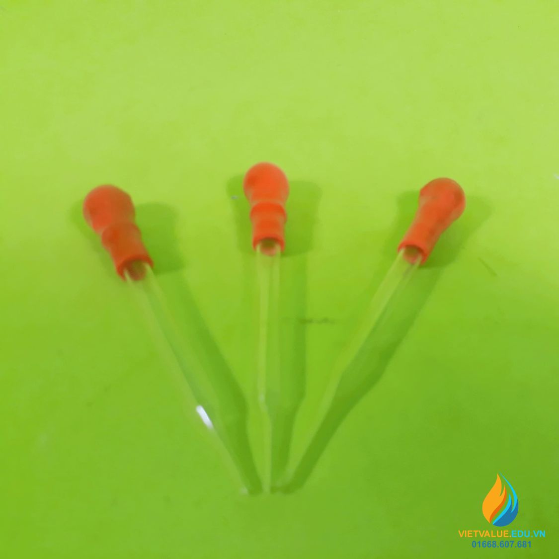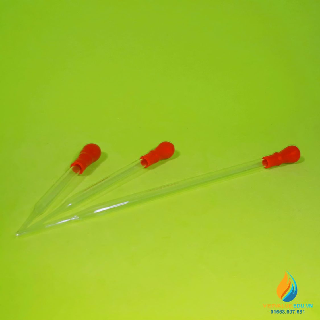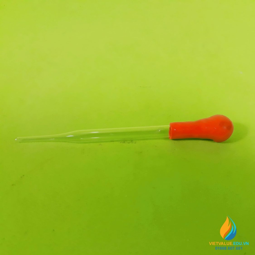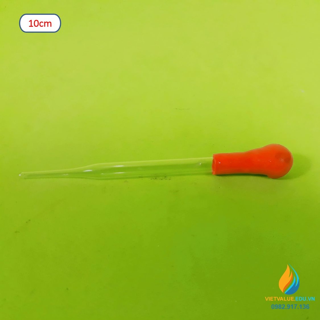 Pipet hút bằng thủy tinh, bầu cao su, dài 9cm, 10cm, 12cm, 15cm, 20cm. Dùng trong các thí nghiệm hóa, lý, sinh học, liên quan đến pha chế, pha trộn dung dịch chất lỏng