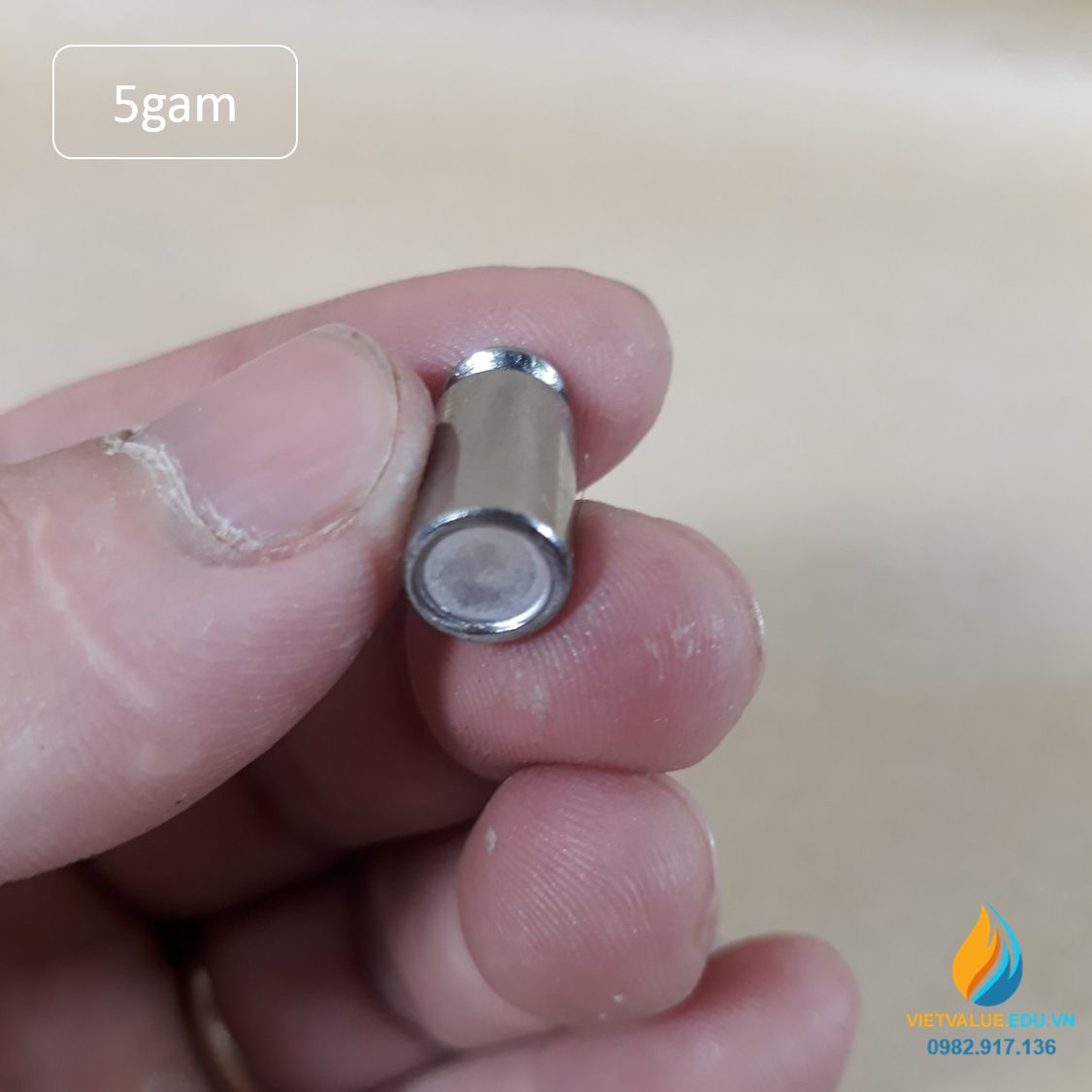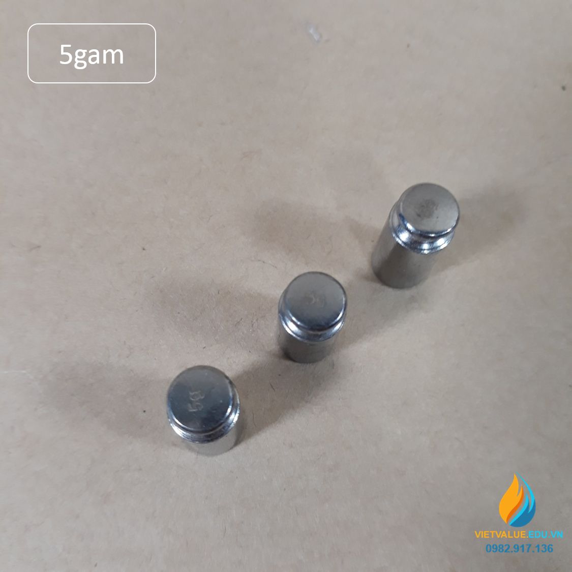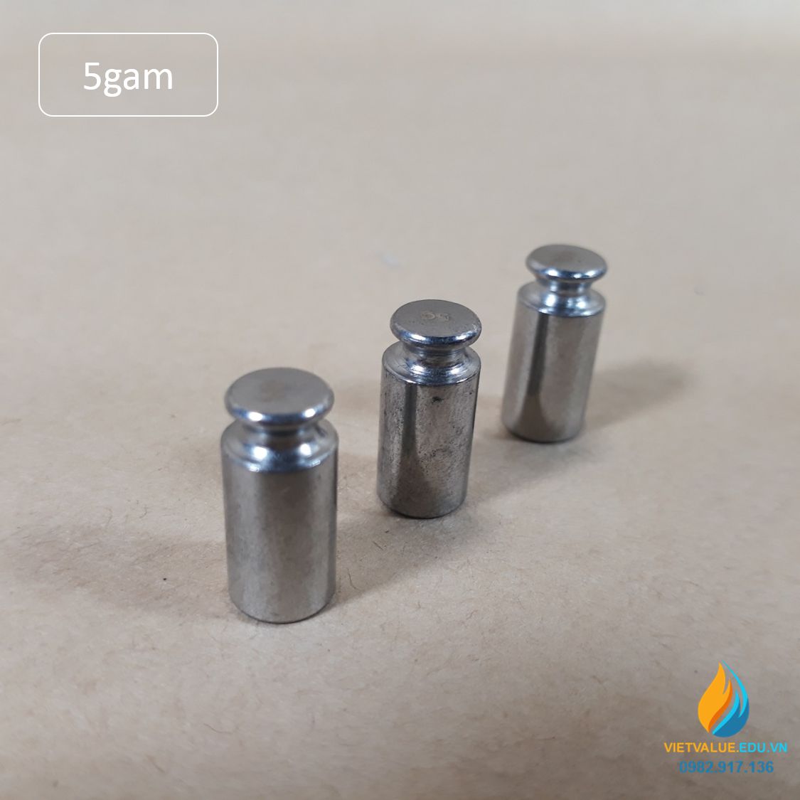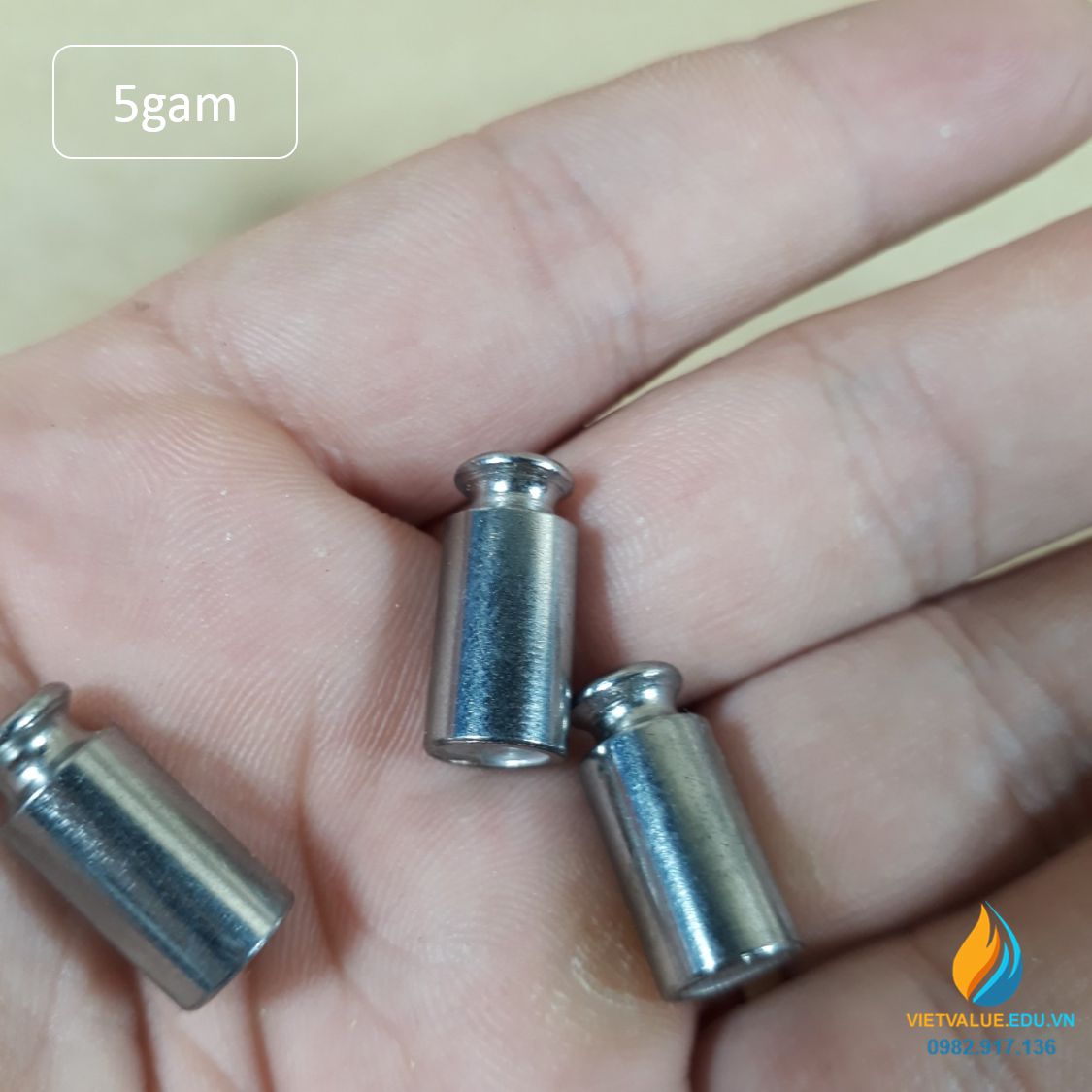 - Quả cân nặng 5 gam hay gọi là quả gia trọng có thiết kế hình trụ với núm ở trên cùng, dể dàng sử dụng nhíp gắp để di chuyển qua nặng, đảm bảo không ảnh hưởng để các yếu tố khác trong hệ