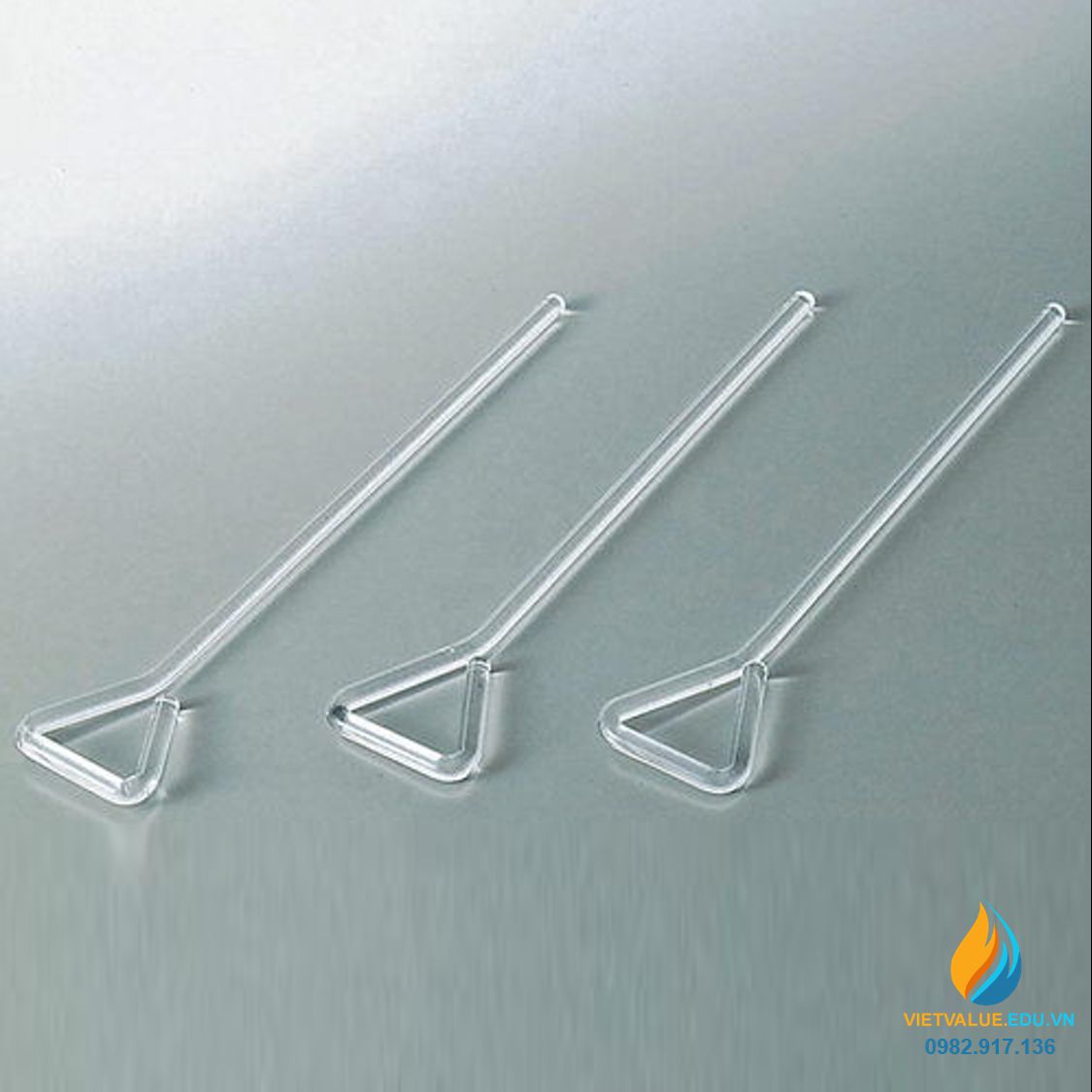 -Que tràn thủy tinh với đầu tam giác chịu nhiệt rất thích hợp cho việc khuấy đồ nóng hay hóa chất nóng …