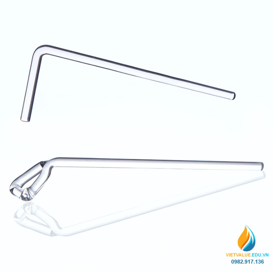 Que tràn thủy tinh, dài 20cm, đầu tam giác, chịu nhiệt trong suốt