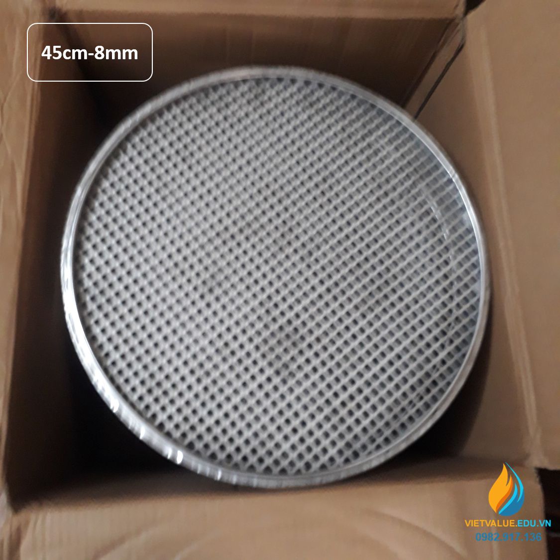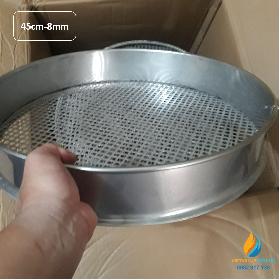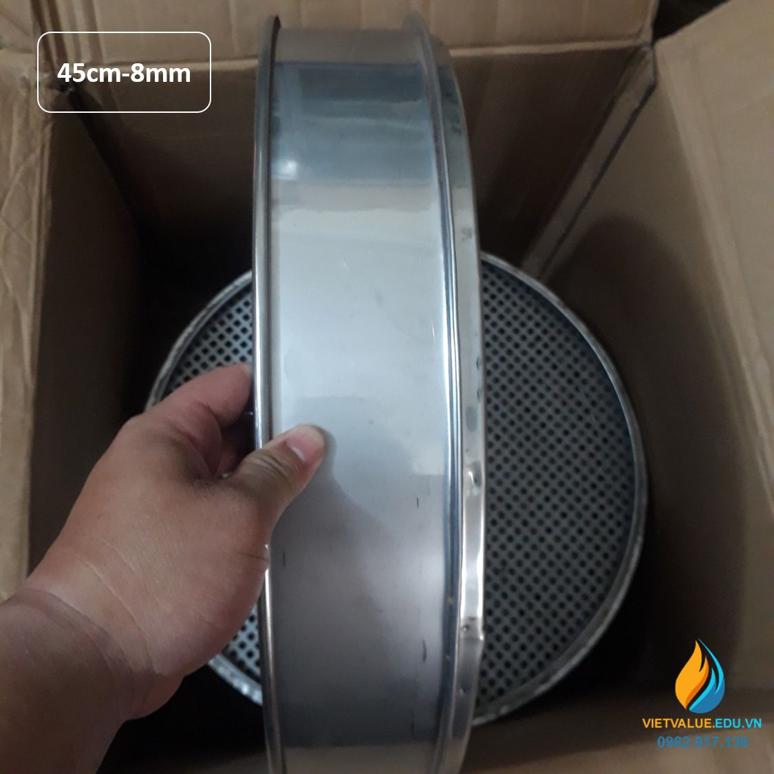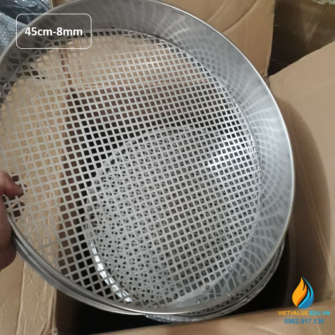 Sàng rây tiêu chuẩn đường kính 45cm, lỗ vuông 8mm, chất liệu inox không gỉ, lỗ đúc
