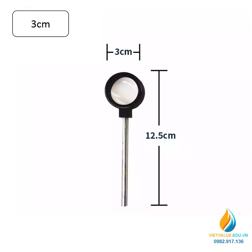 - Đường kính 3cm, tiêu cự 15 cm
